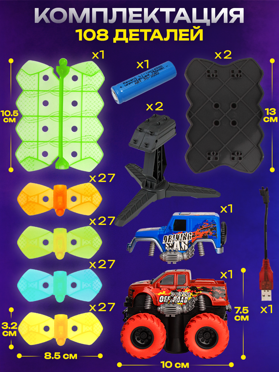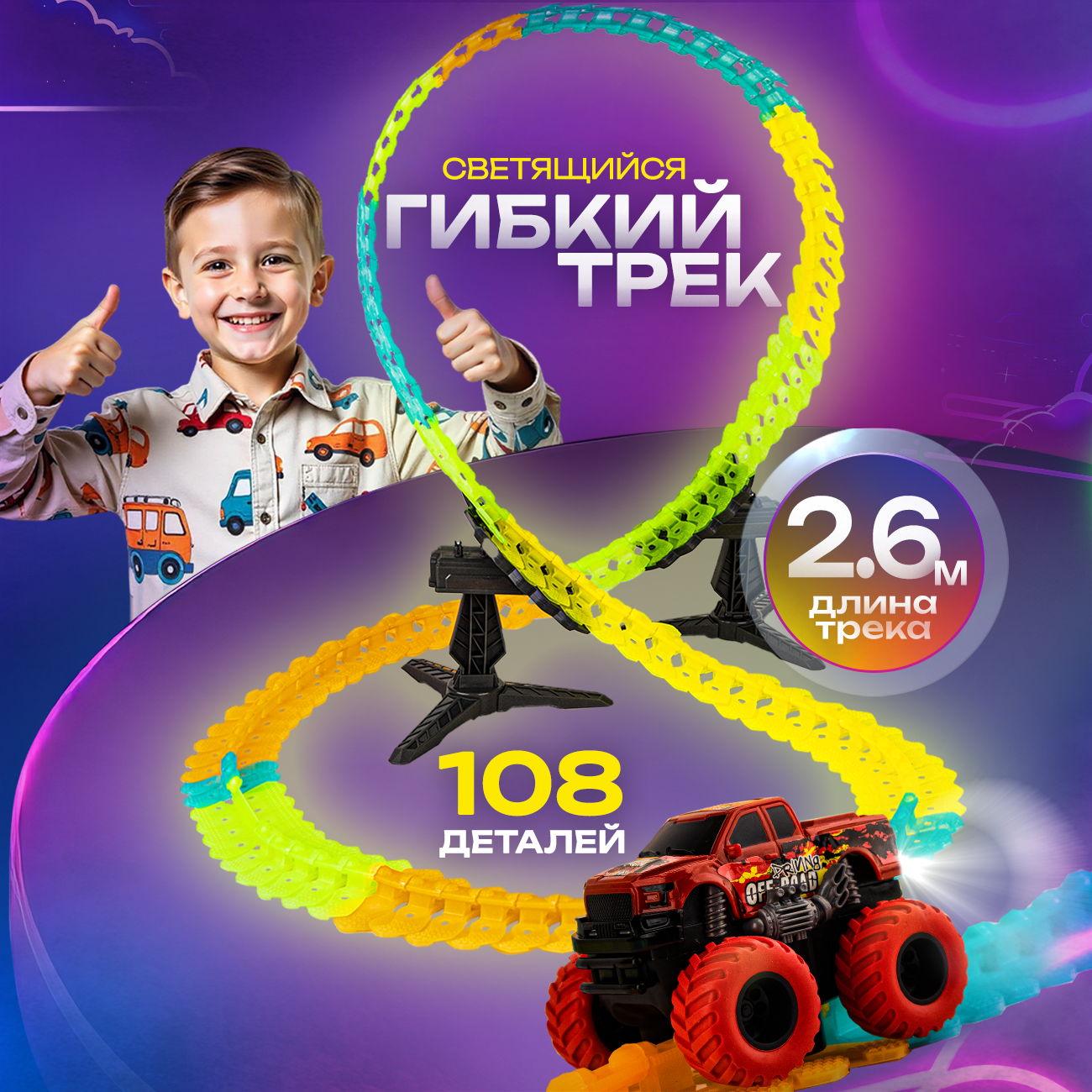 Отзывы на Трек Гибкий с машиной, со светом, на батарейках, 108 деталей, в коробке