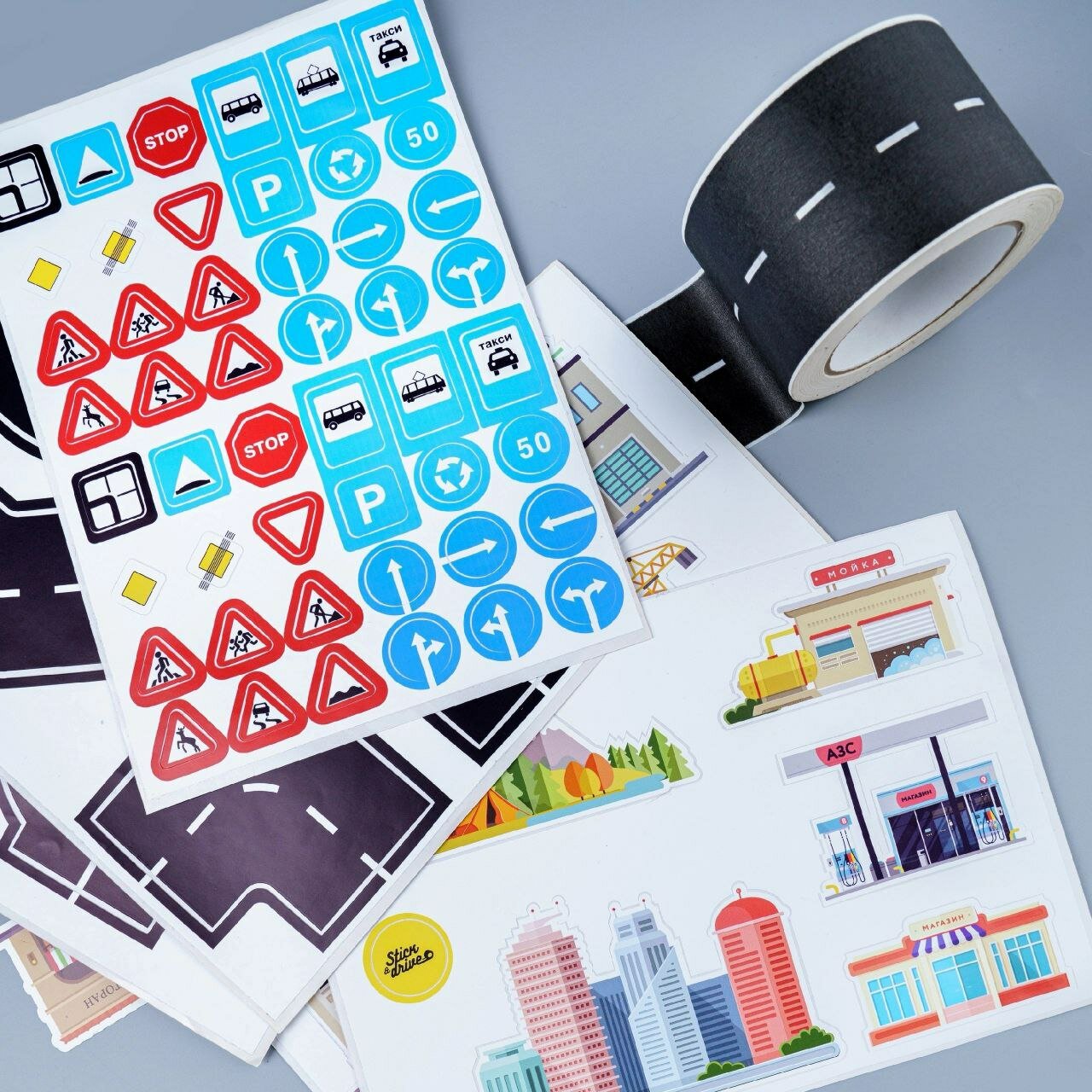 Игровая лента - дорога и стикеры для машинок, набор для треков информация: