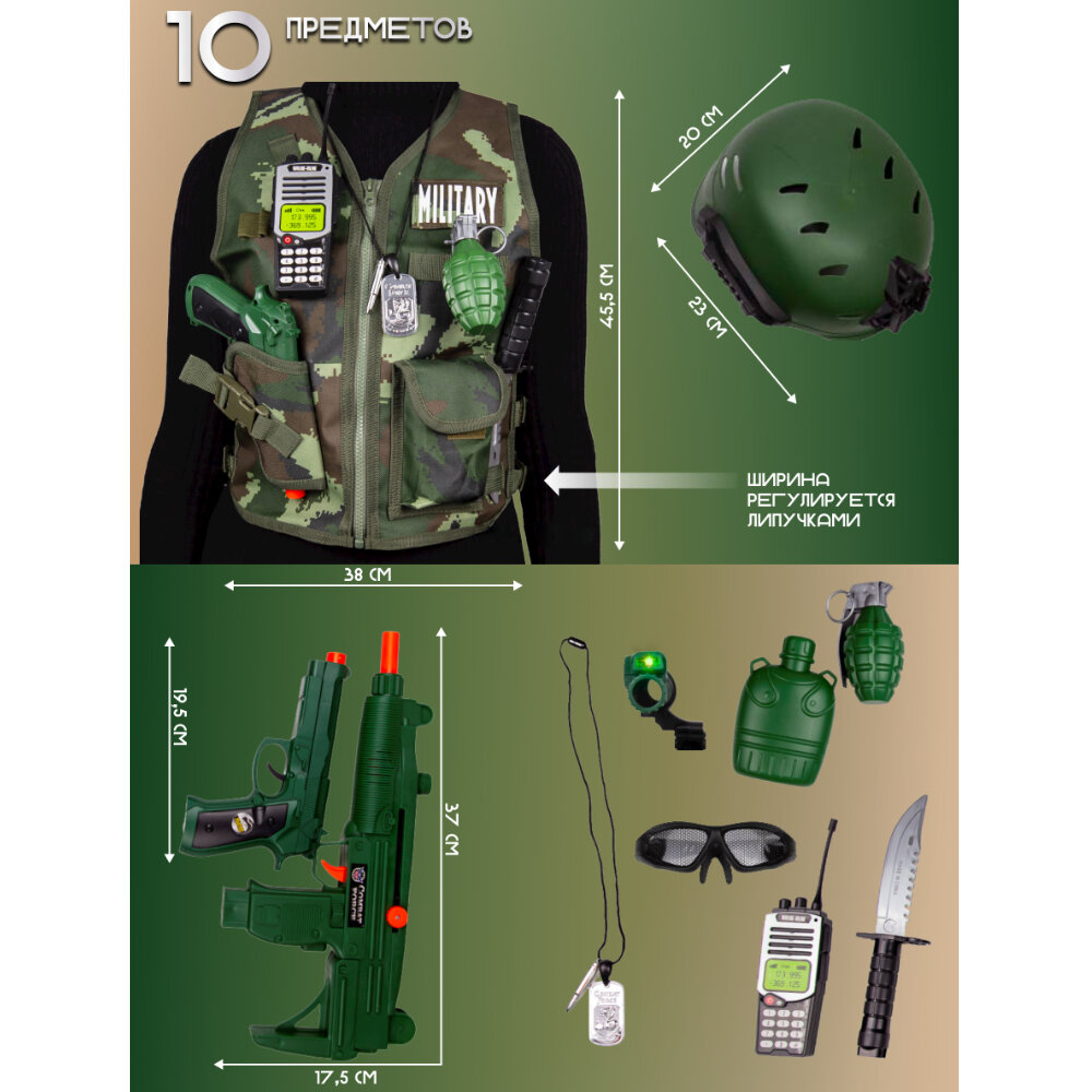 Детский игровой набор военного с аксессуарами, каска, жилет спецназ, игрушечное оружие, М012А информация: