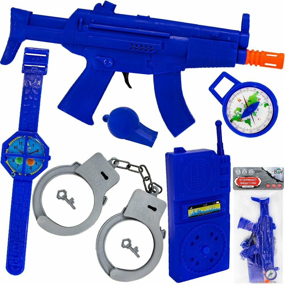 10 цен на Набор полицейского Mr. BOY пулемет с прицелом, свиток, часы, ключи, рация, в пакете, 88P18YS (0757011FCJ)