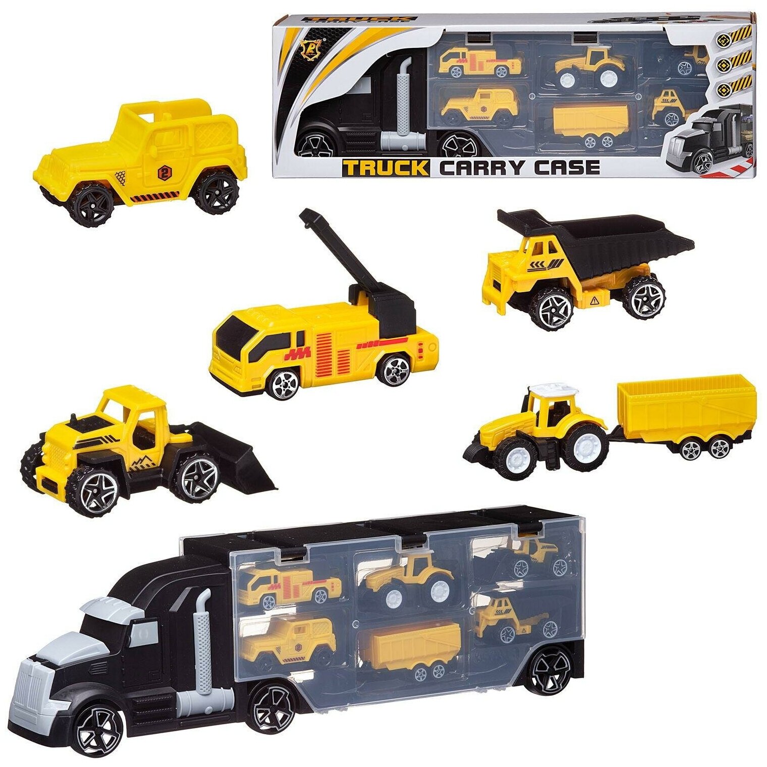 Игровой набор Junfa WA-17187 Автовоз с 5 строительными машинками и прицепом информация: