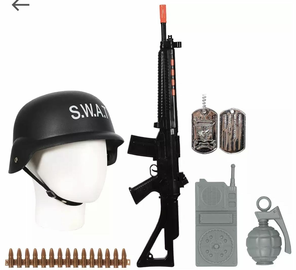 10 цен на Набор военного детский автомат, каска, жетон, граната, рация