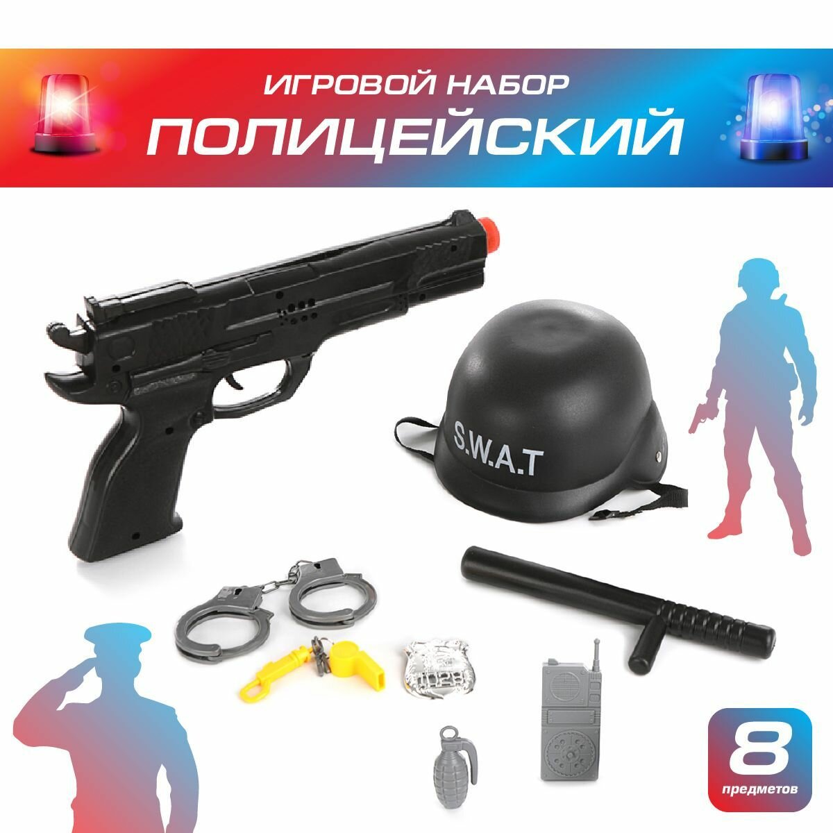 Детский игровой набор полицейского 8 предметов, Veld Co / Игрушечные оружия для детей / Игрушка пистолет, рация, каска для мальчика информация:
