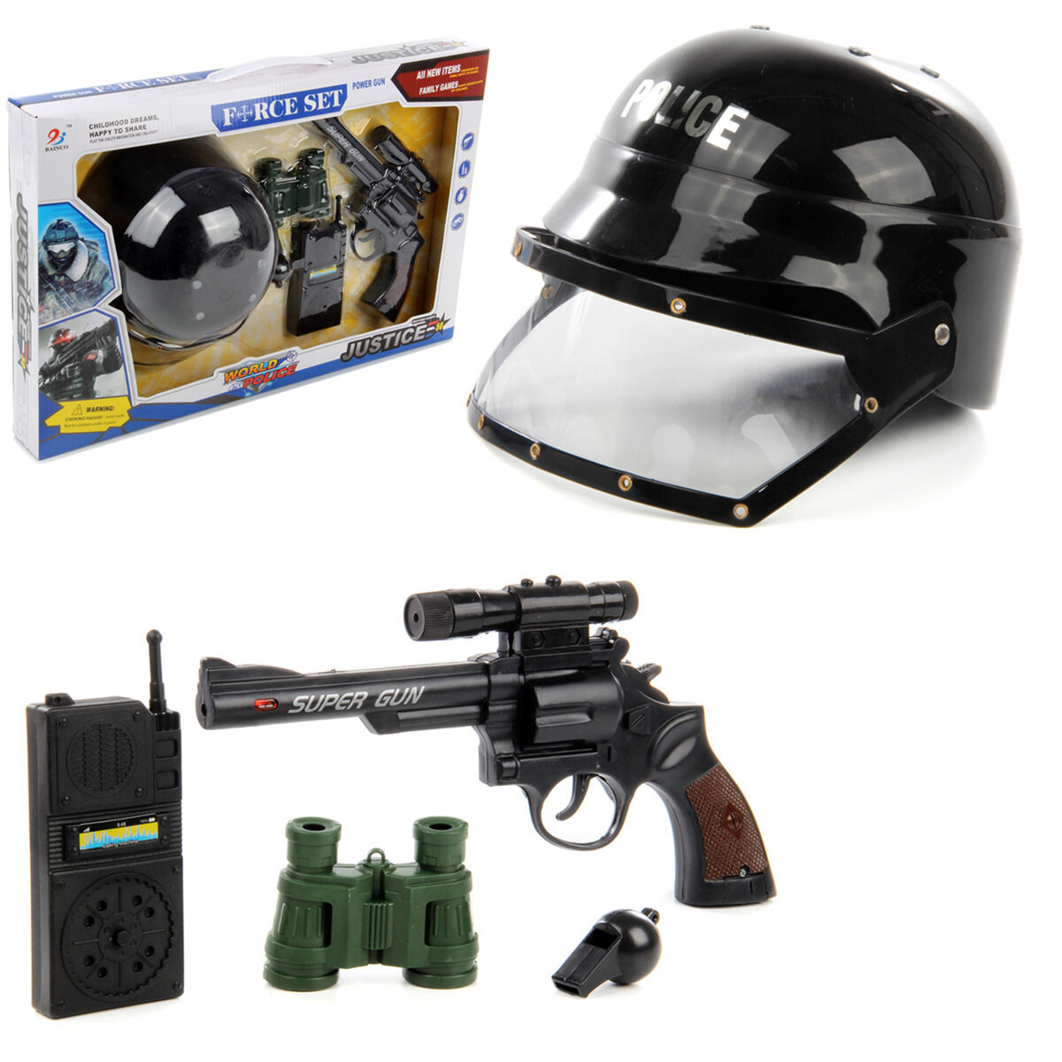 Набор полицейского, c пистолетом, каской, свистком и биноклем, Veld Co информация: