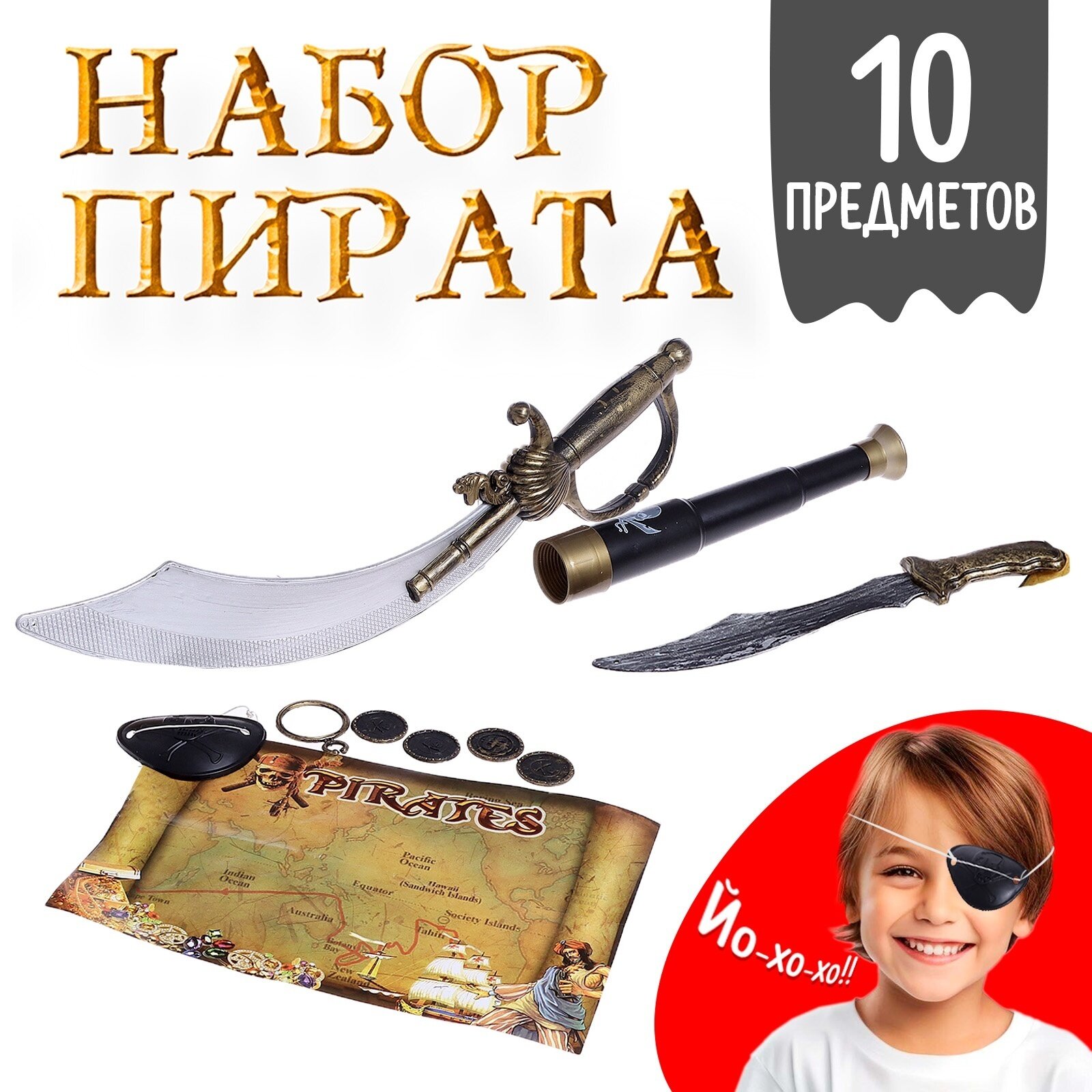 Характиристики этого товара не найдены!Отзывы на Детский набор пирата "Абордаж", 10 элементов, для детей от 3 лет