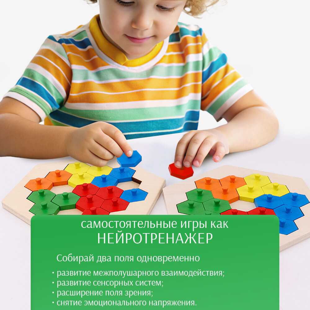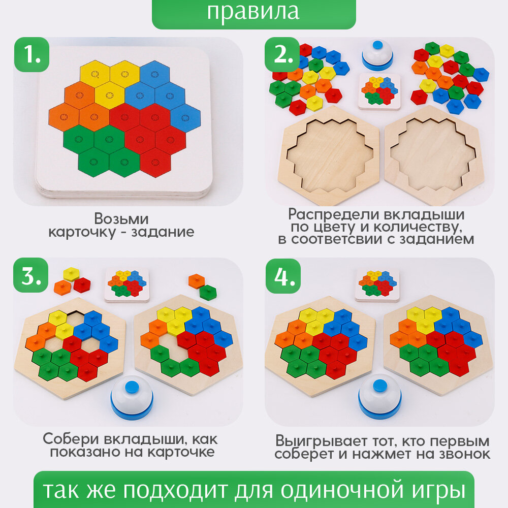 Игра настольная "Собери по образцу. Соты", дерево, развивающая, 3-14 лет информация: