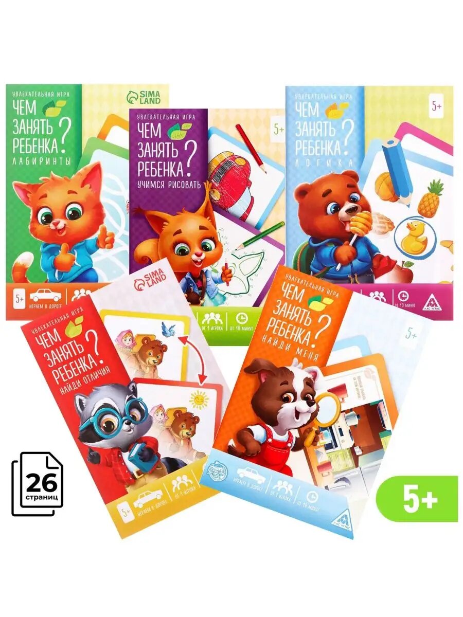 10 цен на Набор (5 штук) развивающих книг-игра серии "Чем занять ребенка?", для детей от 5 лет, по 26 страниц