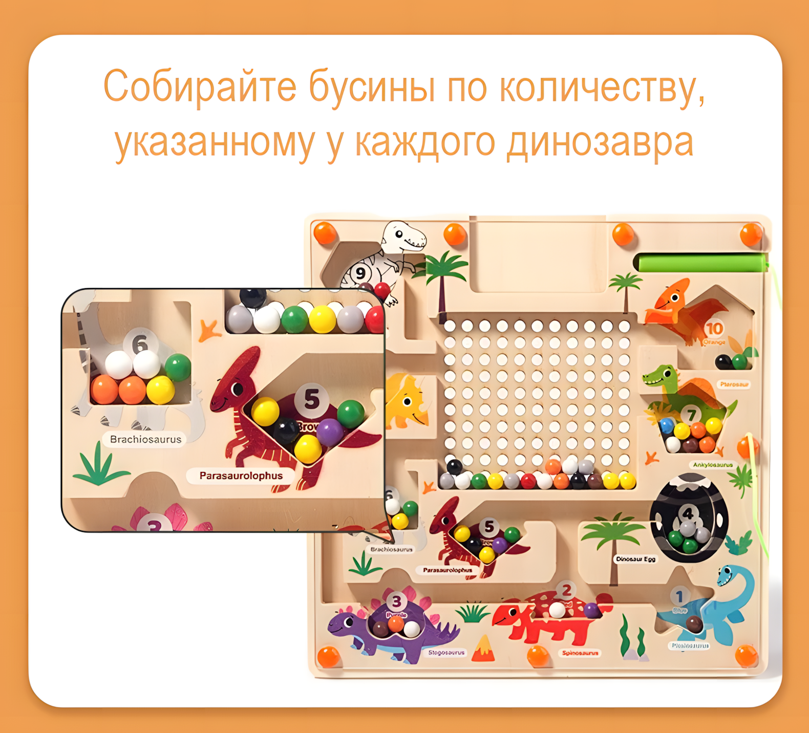 10 цен на Деревянный магнитный лабиринт с шариками "Динозавры" от 3х лет, 10 карточек с рисунками