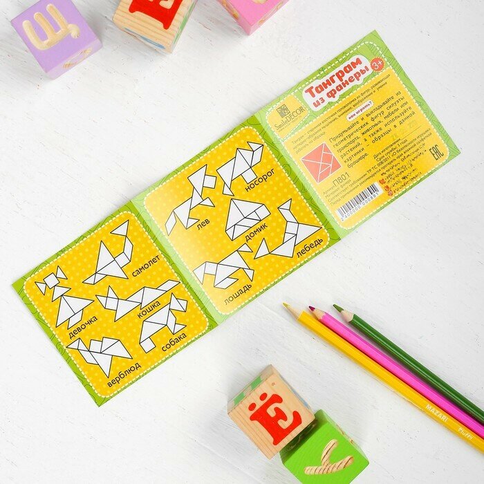 Развивающая игра Smile Decor "Танграм", пазл-вкладыш из фанеры со схемами сборки информация: