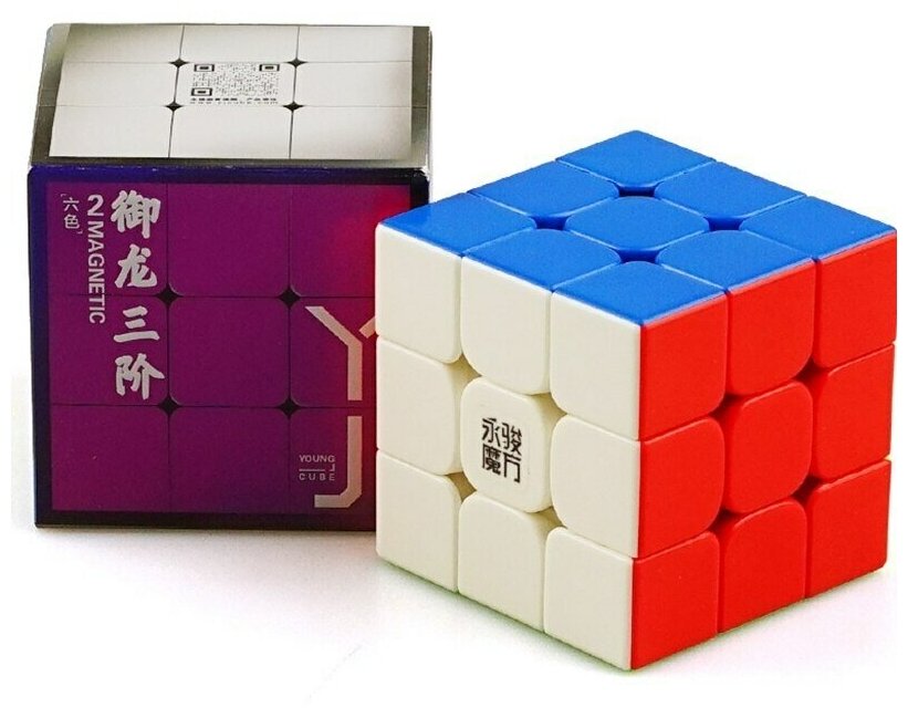 Кубик Рубика YJ 3*3 YuLong V.2 M магнитный, цветной пластик, скоростной, без наклеек информация: