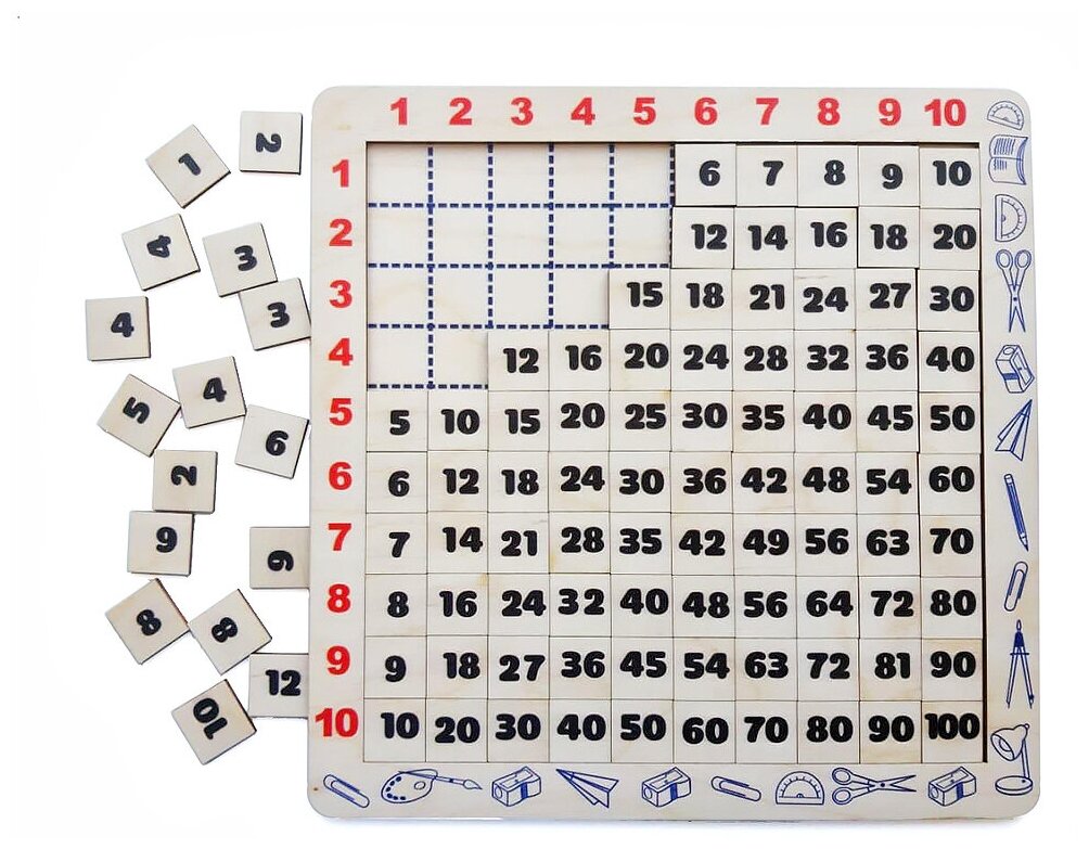 10 цен на Деревянный пазл-вкладыш Smile Decor "Таблица Пифагора", обучающая игра-головоломка для малышей, учимся считать