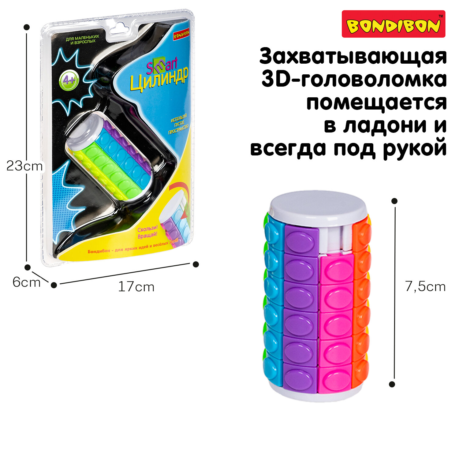 Головоломка Цилиндр 6 рядов Bondibon развивающая игрушка нейротренажер в дорогу информация: