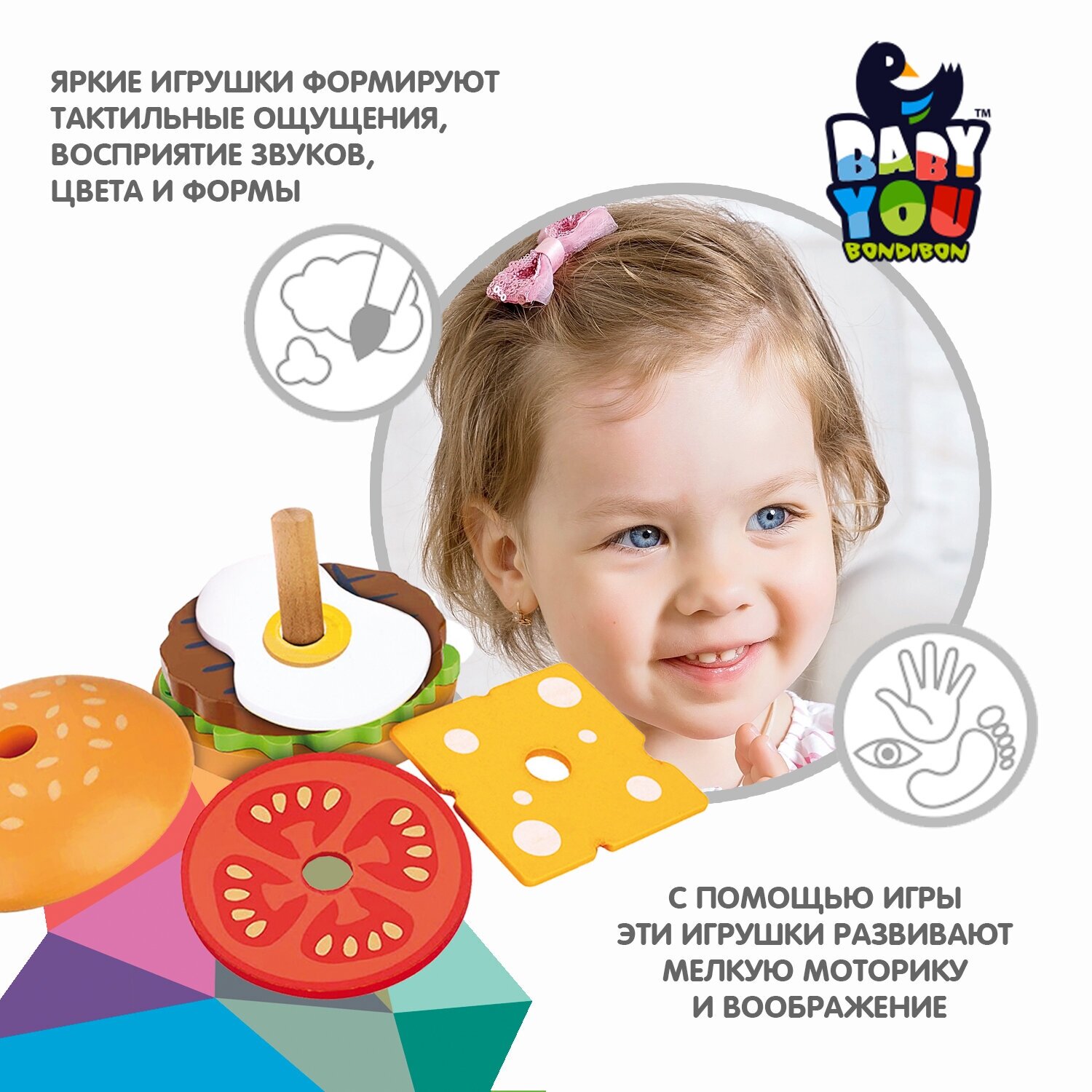 Развивающая головоломка Bondibon пирамидка бургер , игрушка для малышей информация: