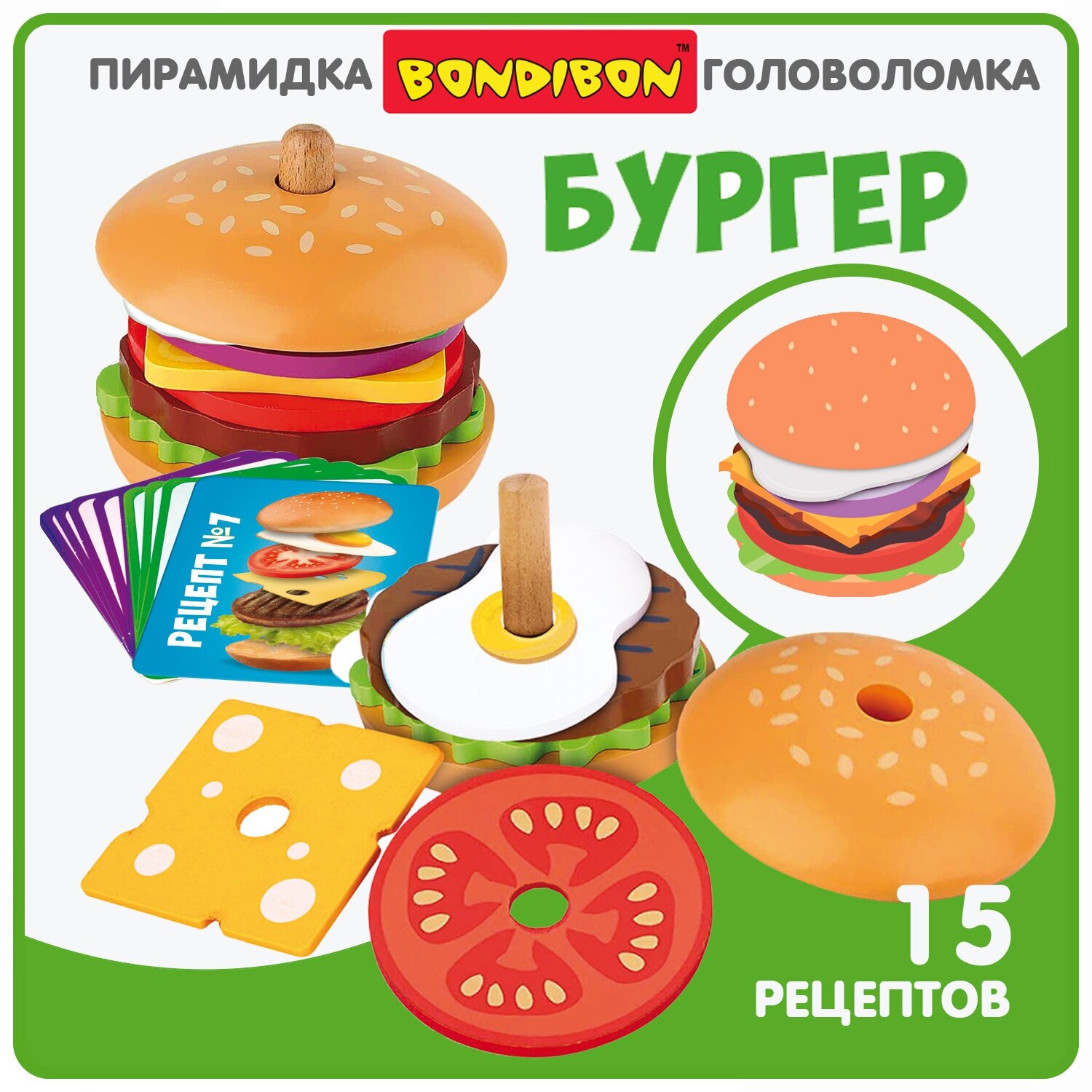 10 цен на Развивающая головоломка Bondibon пирамидка бургер , игрушка для малышей