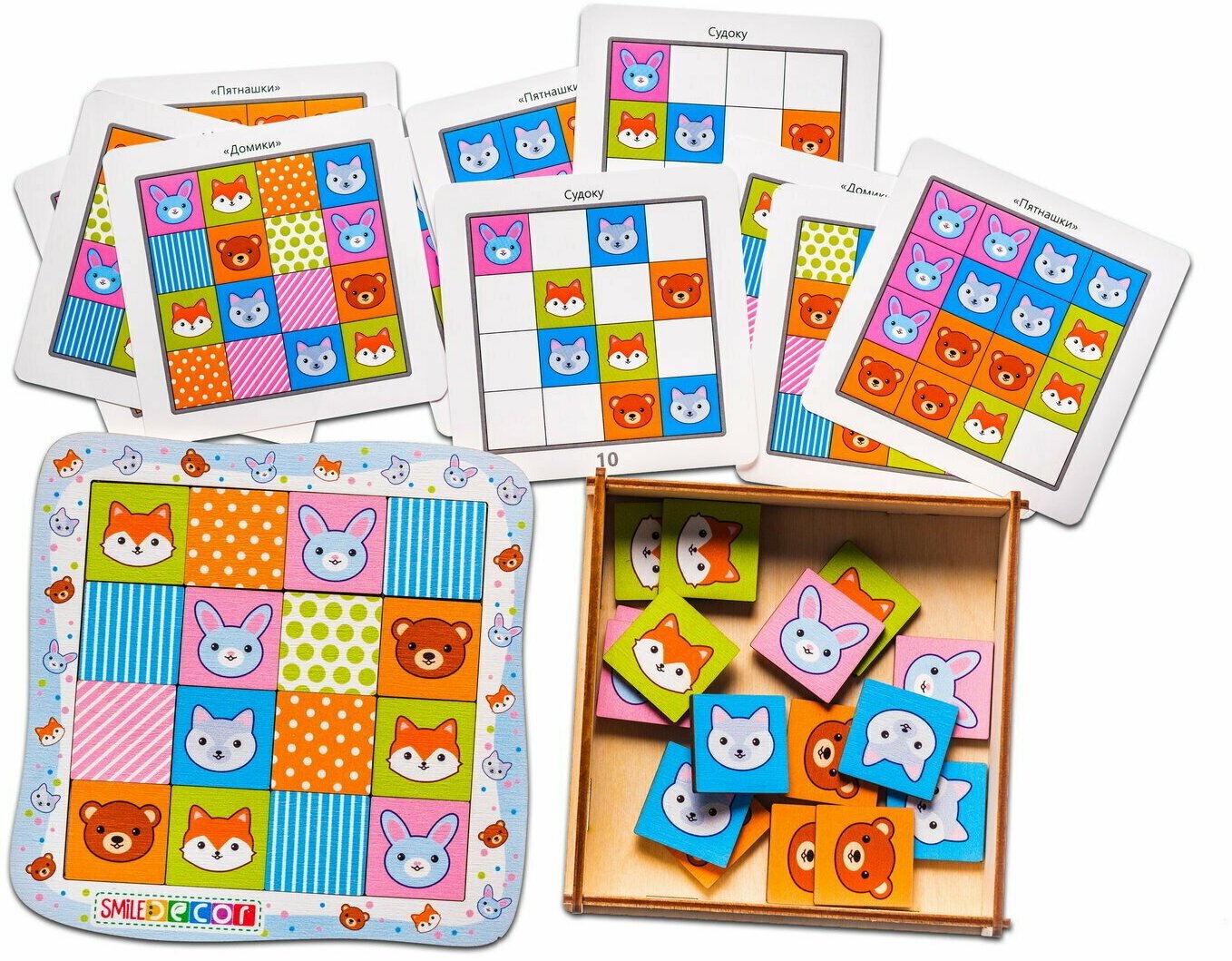 10 цен на Деревянная головоломка Smile Decor "Лесные жители", развивающая игра с шаблонами-заданиями, сложи по образцу, пятнашки, судоку