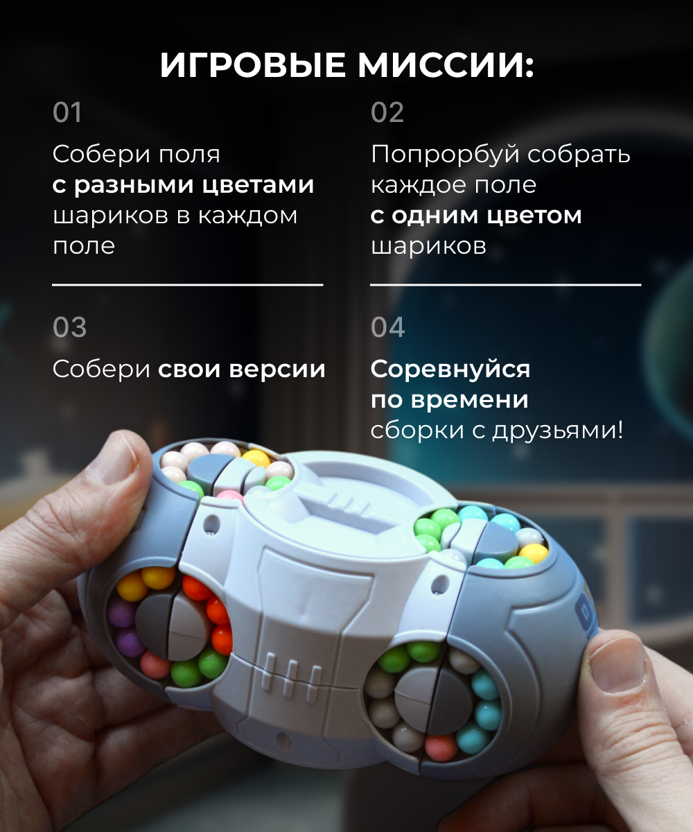 Головоломка для детей и взрослых Космический Шаттл LAZY SUMMER шаробол, развивающая игра кубик рубик с шариками, серый информация: