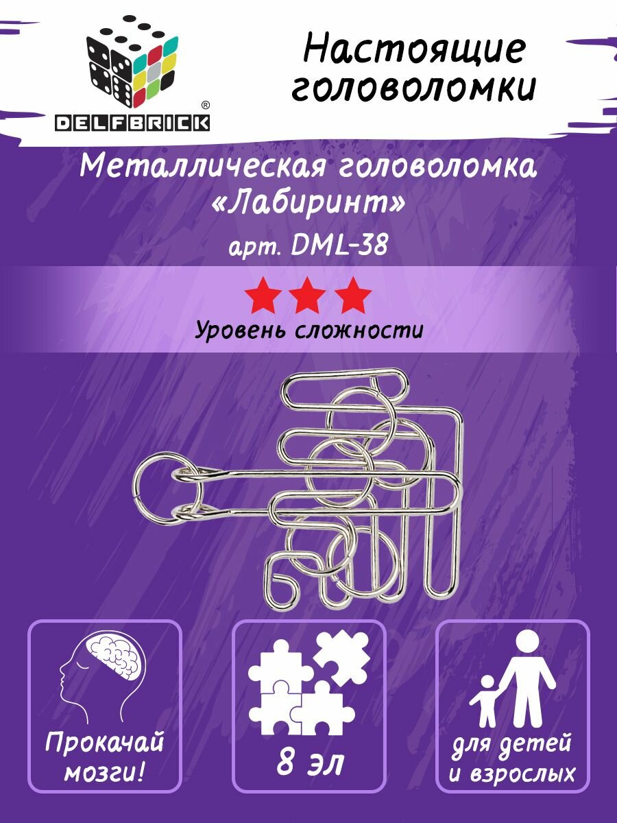Головоломка металлическая DELFBRICK DLM-38 "Лабиринт" 8 элементов 1 шт информация: