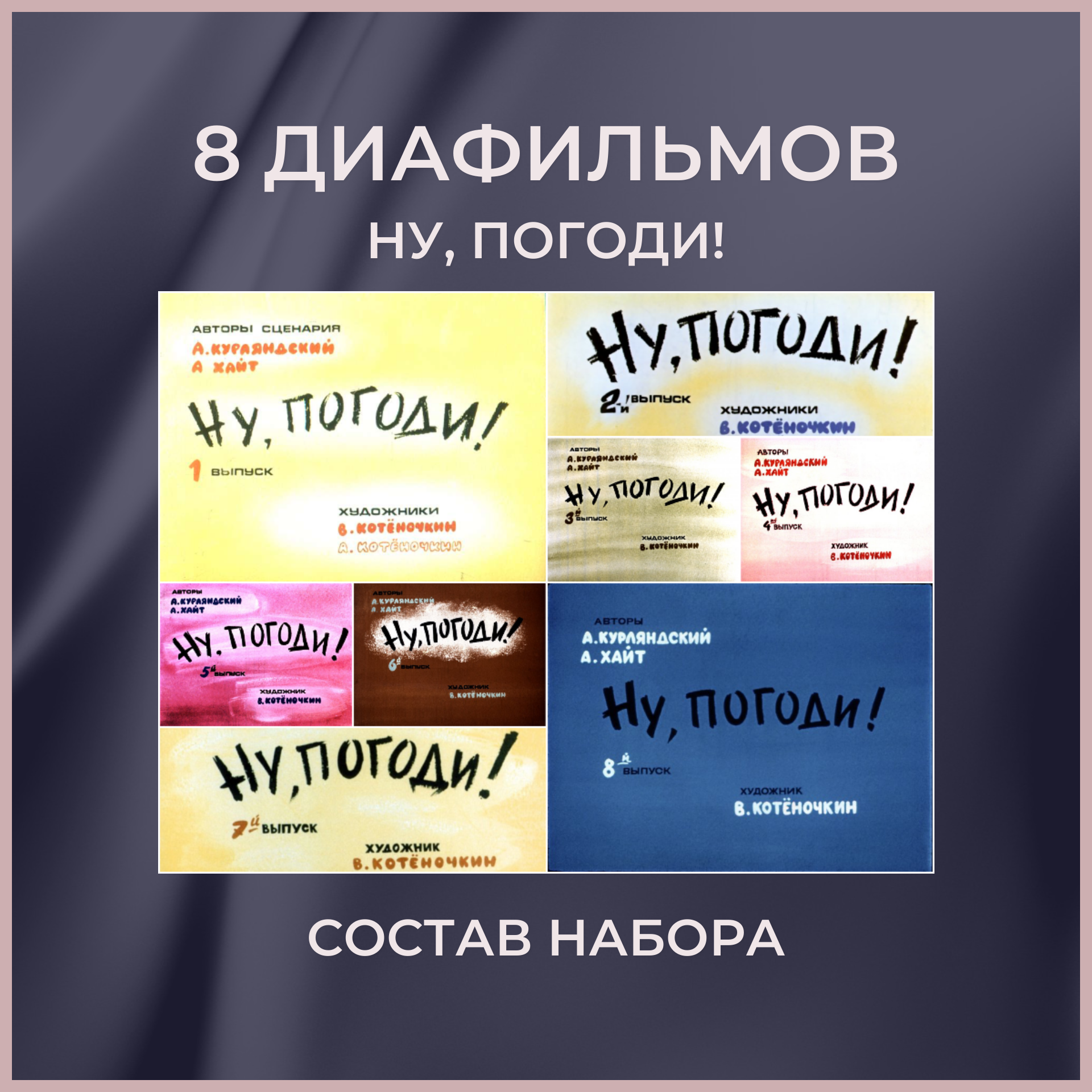 Характиристики этого товара не найдены!Отзывы на Набор диафильмов "Ну погоди", 8 шт, для детей с рождения, Студия Диафильм