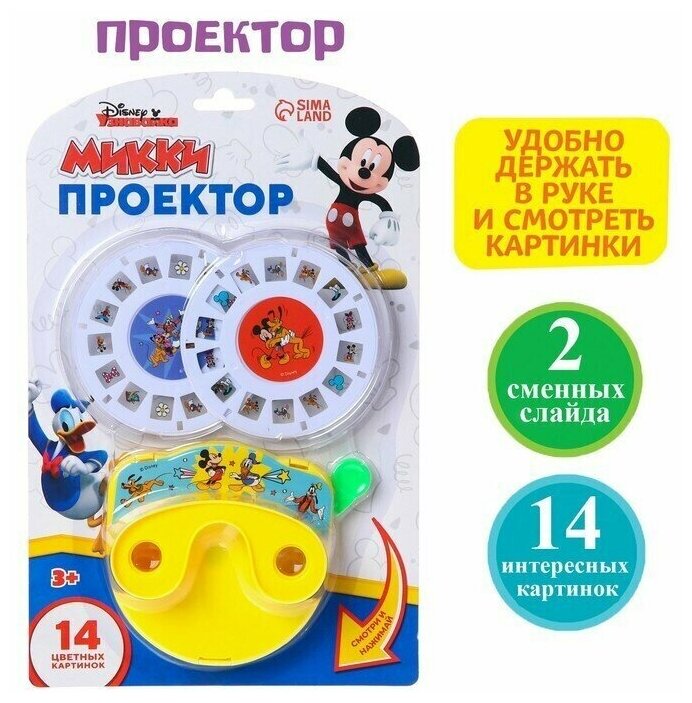 Проектор Микки, 14 интересных картинок, 2 сменных слайда, от 3 лет, 1 шт. информация: