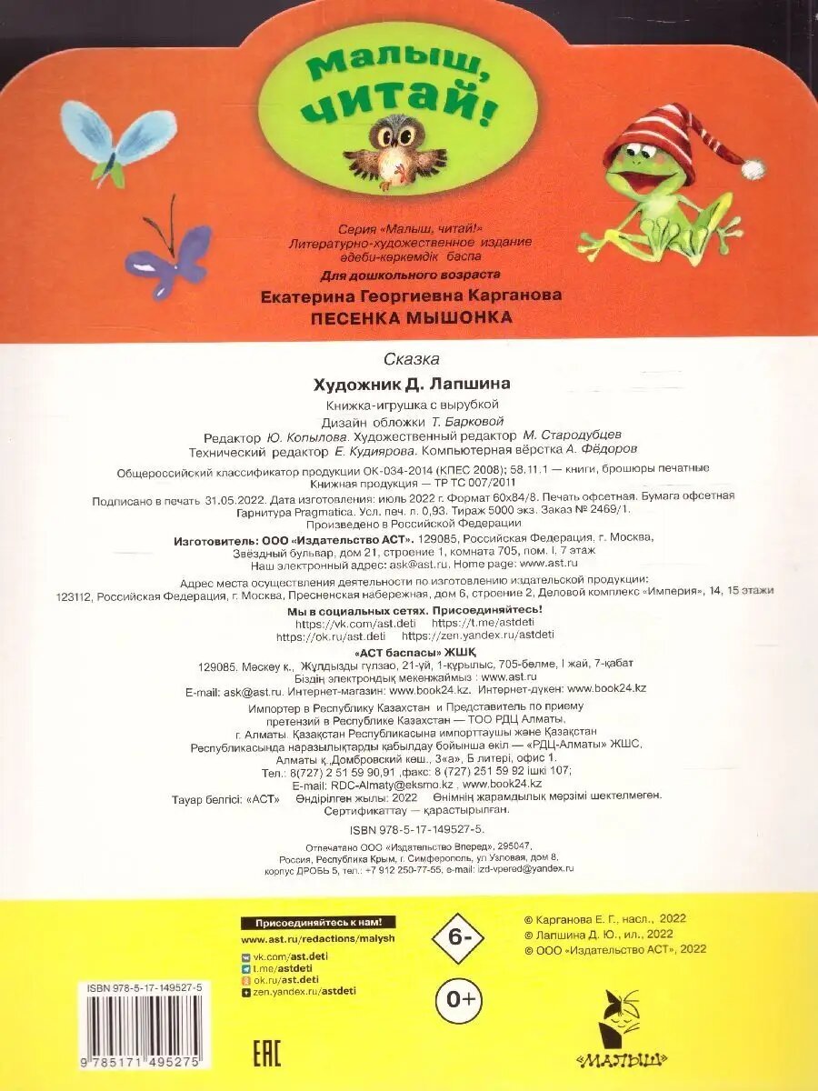 0 отзывов, средняя оценка 0. Чтобы купить «Песенка Мышонка. Стихи. Малыш, читай!» по лучшей цене мы сканируем авито, алиэкспресс, маркет, озон, савеловский, плеер, горбушку, беру, официальные сайты и находим минимальную. Администрация не несет ответсвенность актуальность цен на Песенка Мышонка. Стихи. Малыш, читай!, более подробно узнавайте на сайте магазина.
