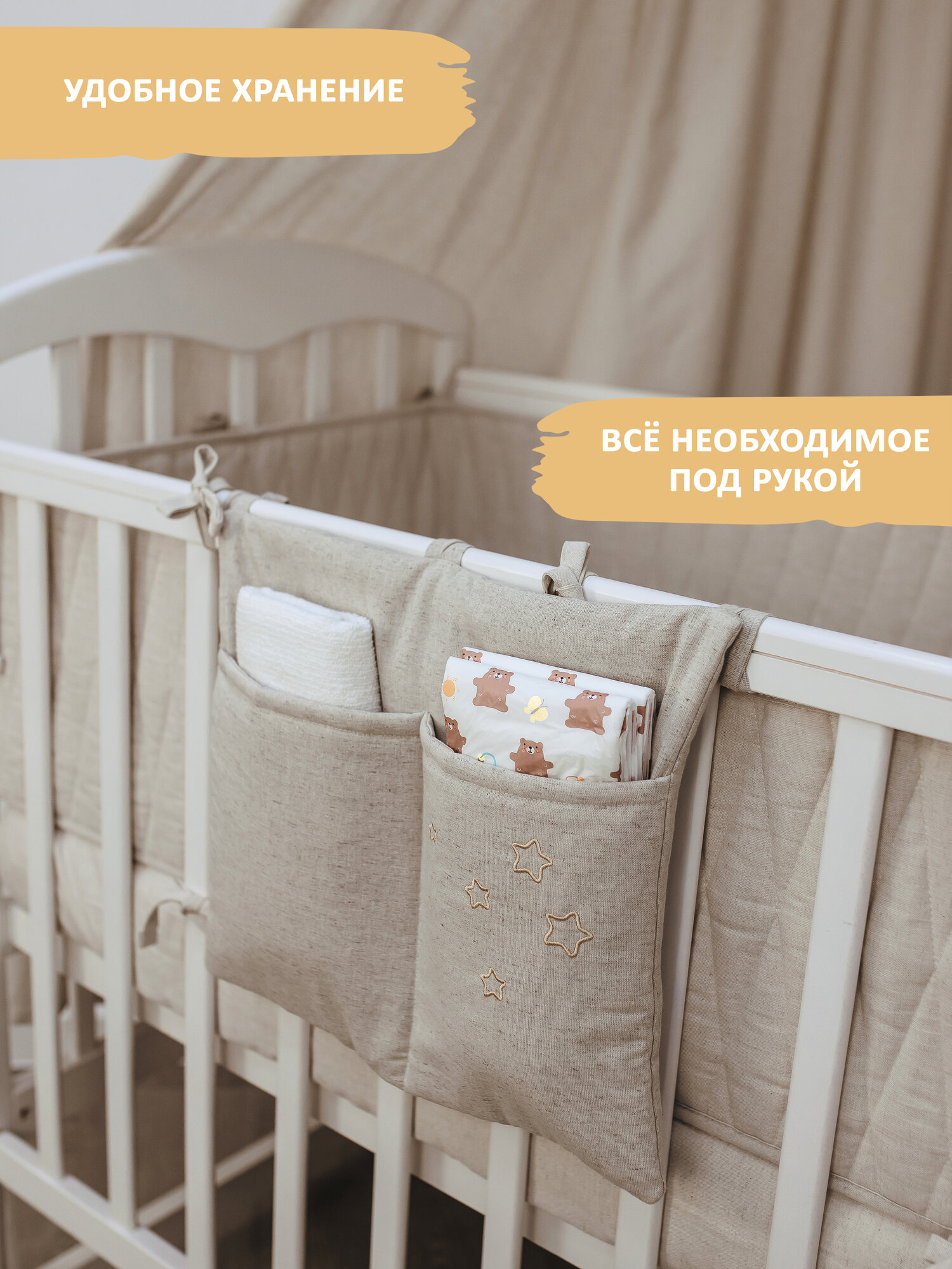 Отзывы на Карман - органайзер на кроватку "Звездочки" два отделения, 33,5*39*5см, лен