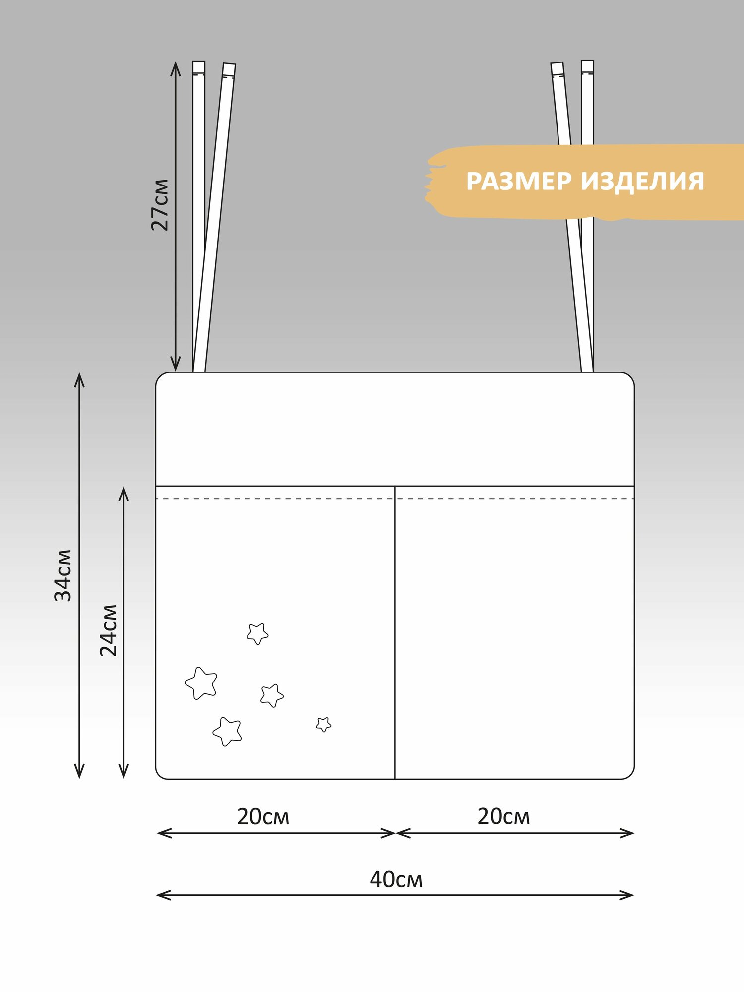 Карман - органайзер на кроватку "Звездочки" два отделения, 33,5*39*5см, лен информация: