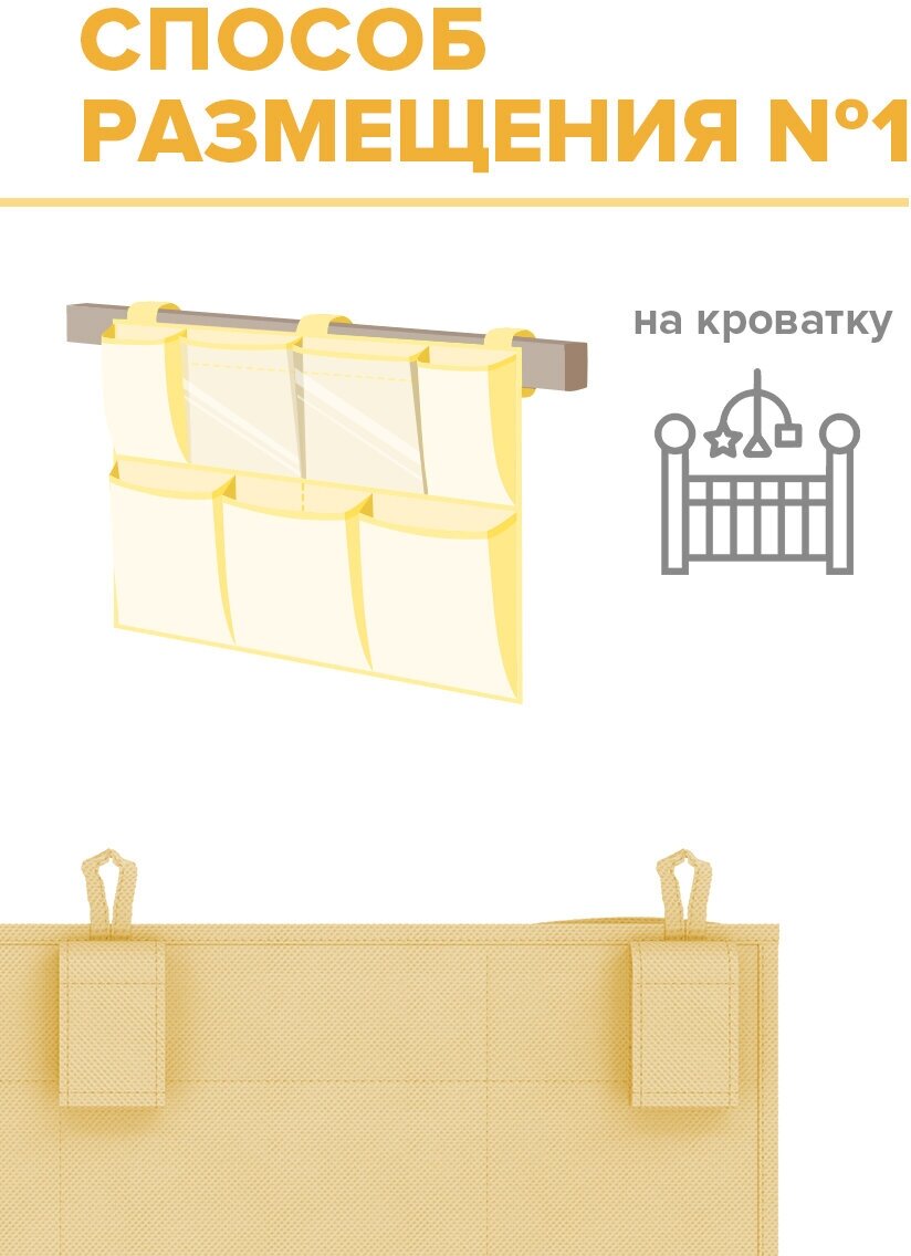 10 цен на Органайзер на кроватку 7 отделений с пластиковыми вставками, 55*41 см, желт, любимчики