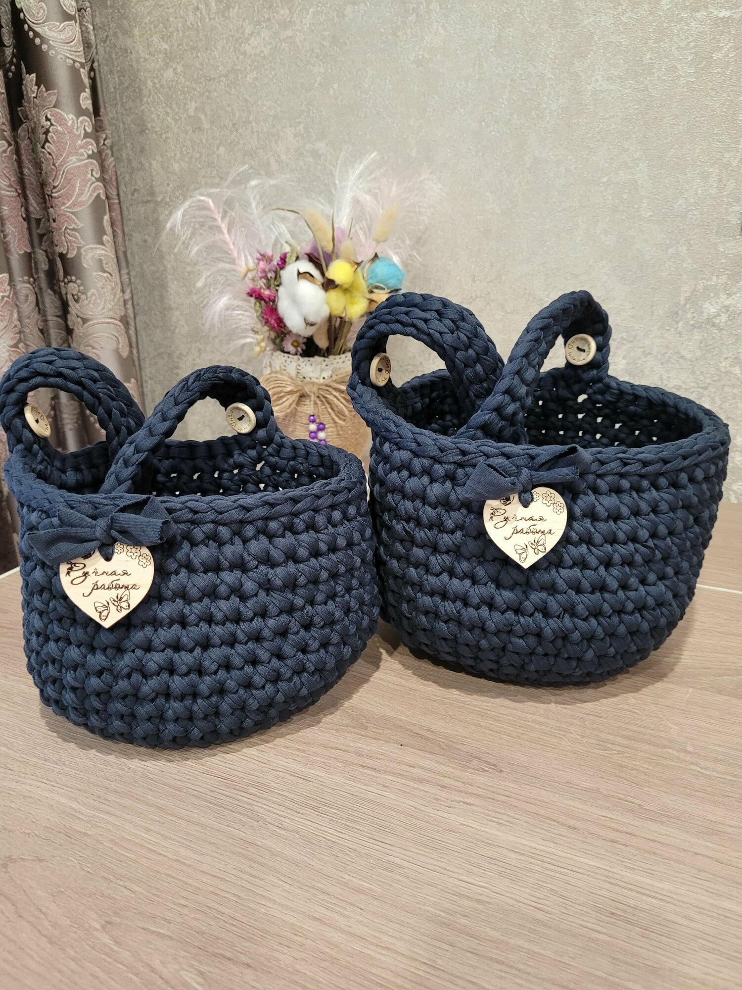 Набор из 2-х подвесных вязаных корзин на детскую кроватку/органайзер/тёмно - синий. информация: