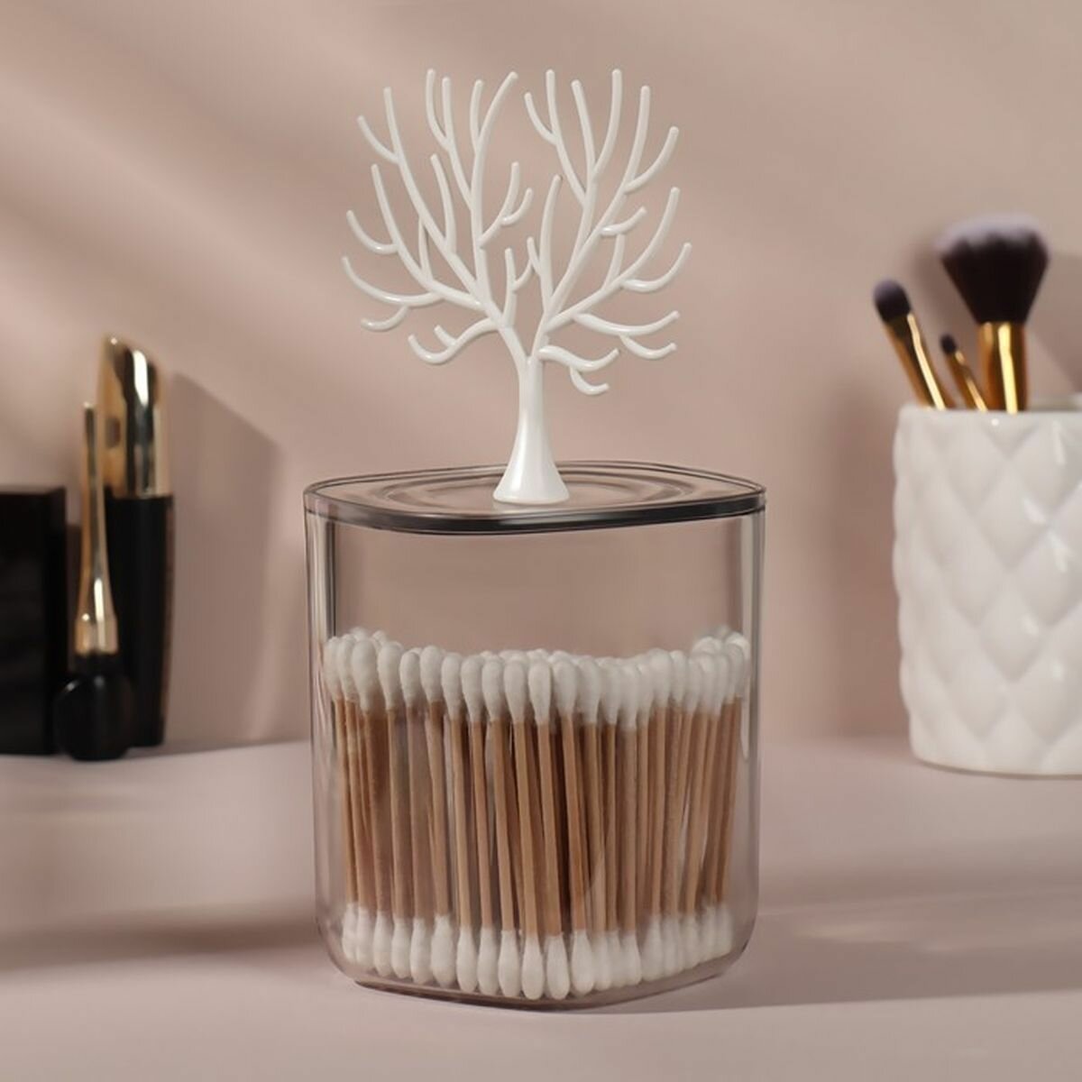 Органайзер для хранения ватных дисков, с крышкой, d - 6.5 x 18 см, в картонной коробке, цвет прозрачный/коричневый, 1 шт.