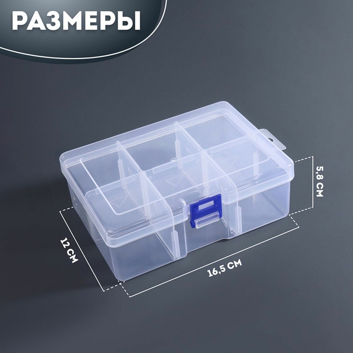 10 цен на Органайзер для декора, передвижные ячейки, 6 ячеек, 16.5 x 12 x 5.8 см, цвет прозрачный, 1 шт.