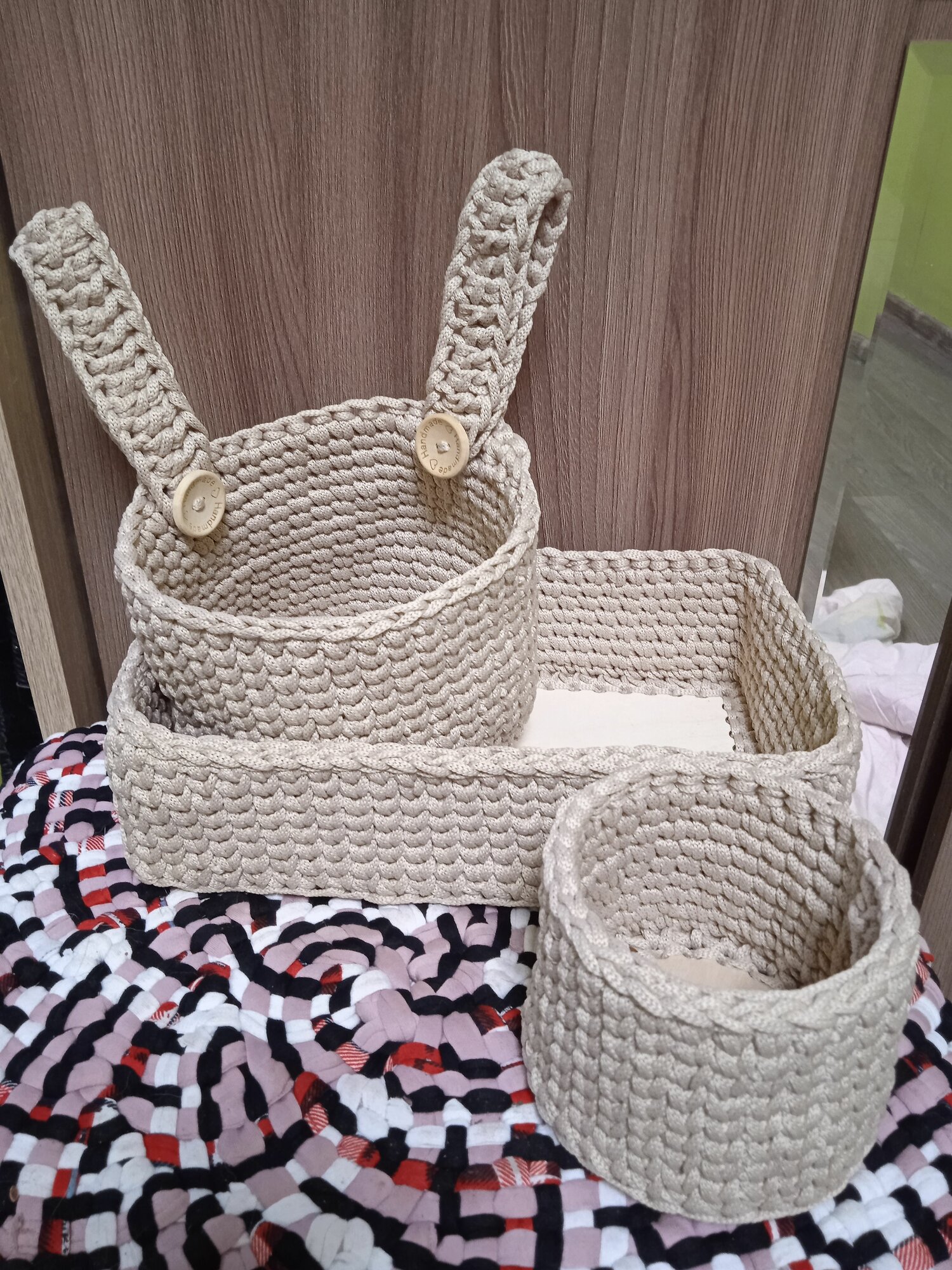 Отзывы на Корзинка для кроватки, органайзер подвесной, вязаные корзины на пеленальный столик, набор корзин для детского комода, набор корзин 3 шт. Бежевый