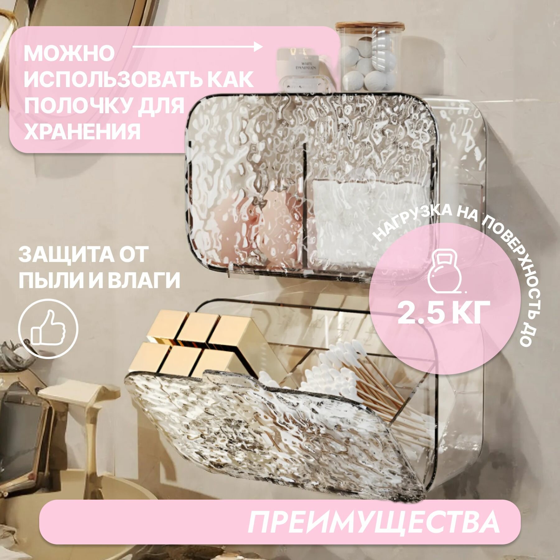 10 цен на Органайзер для косметики настенный, с 2 секциями