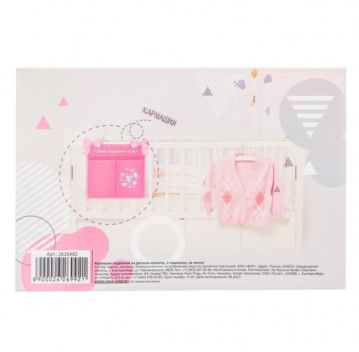 10 цен на Органайзер для хранения вещей на детскую кроватку "Наше маленькое чудо" для девочки, 2 отделения