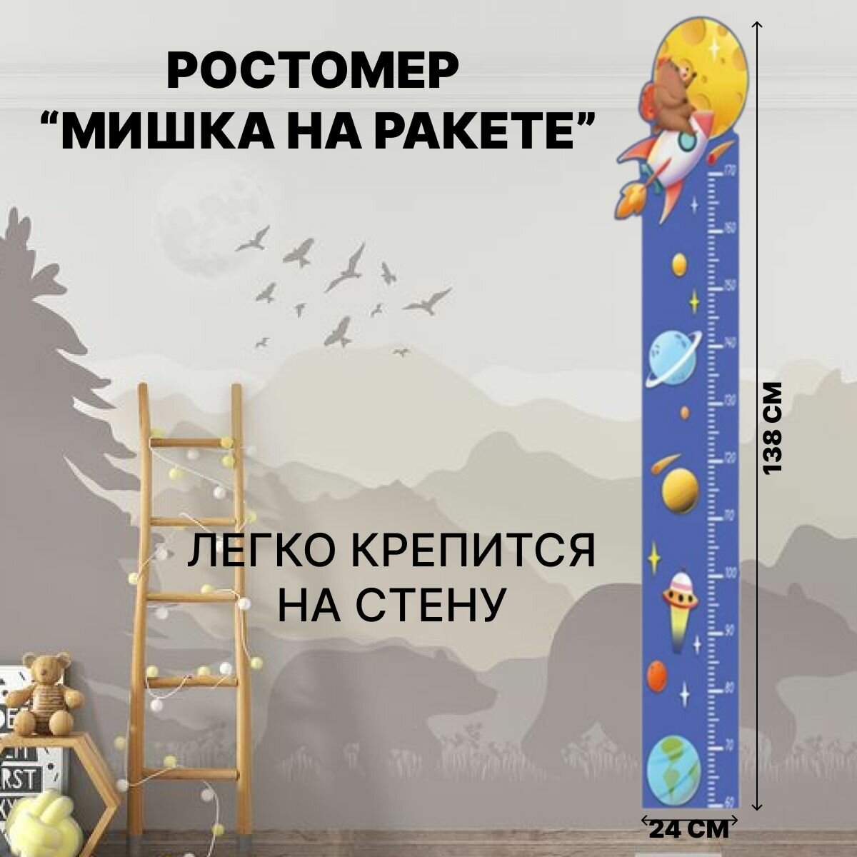 Отзывы на Наклейка пластик интерьерная цветная ростомер "Мишка на ракете" 50x70 см