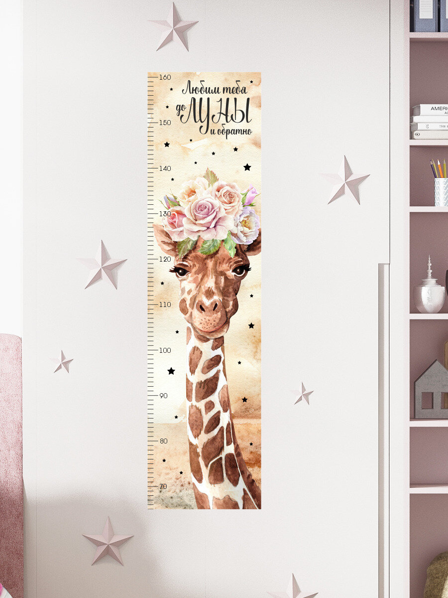 10 цен на Жираф девочка / Шкала для измерения роста / Ростомер детский на стену / Линейка для измерения роста / Ростомер наклейка на стену