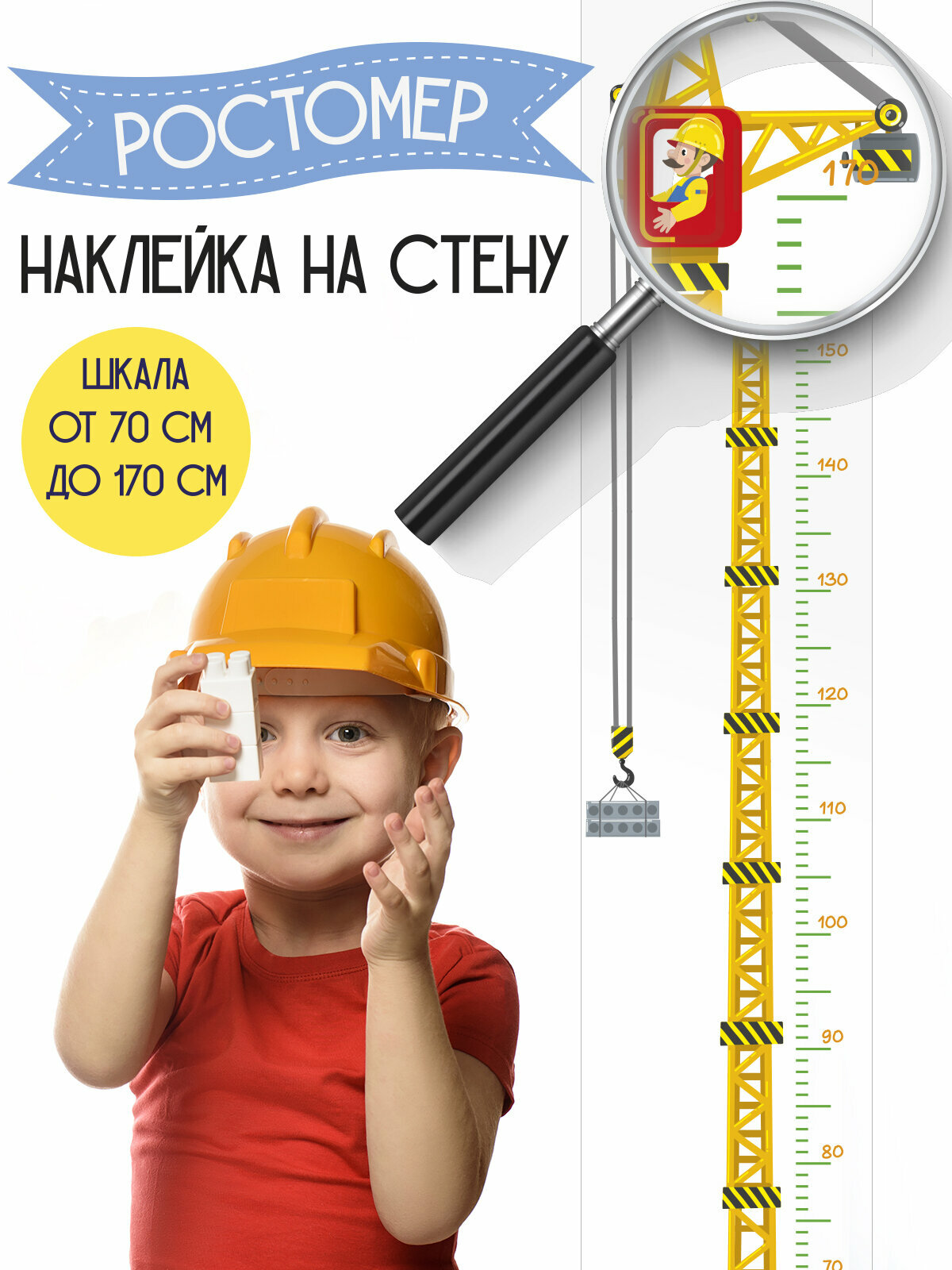 Отзывы на Ростомер детский, наклейка на стену для детской комнаты RiForm "Подъемный кран", 130х25см