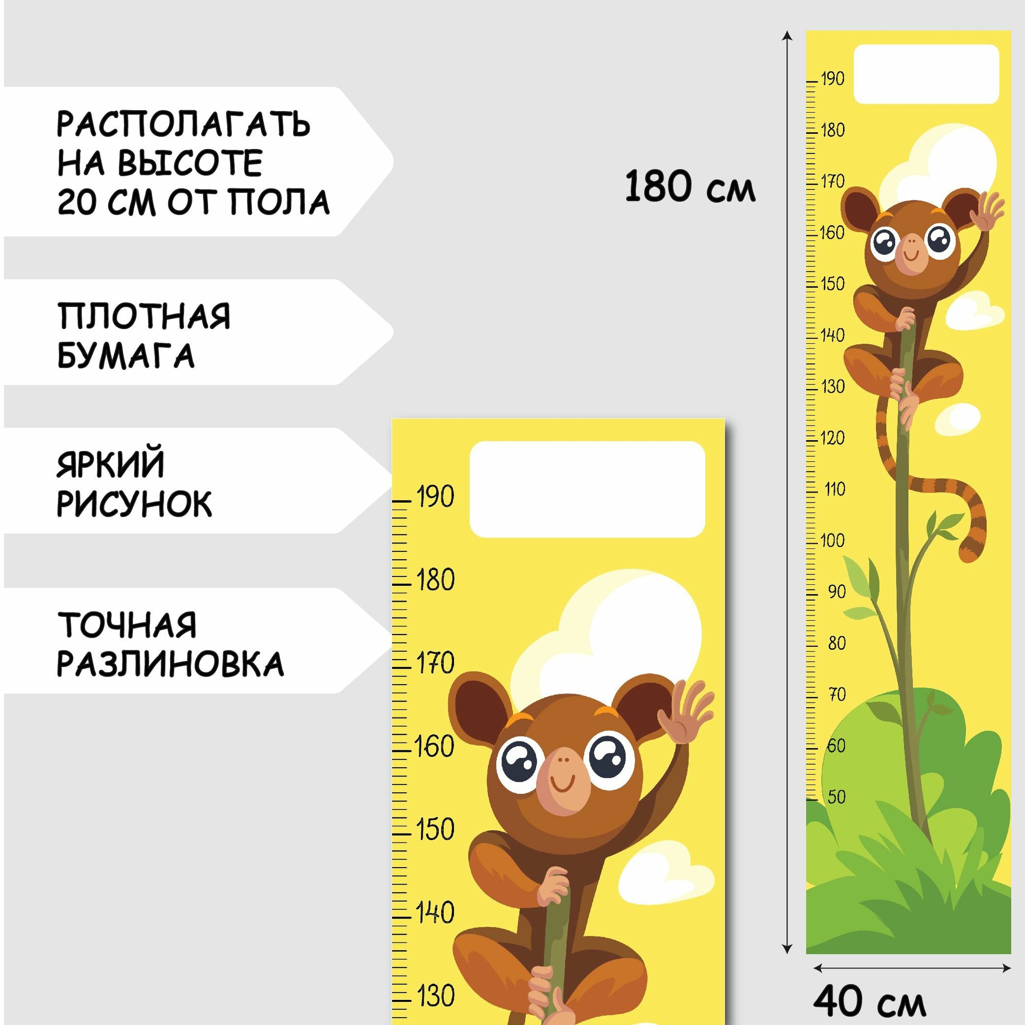 10 цен на Ростомер "Лемур" бумажный, 190 см интерьерный на стену