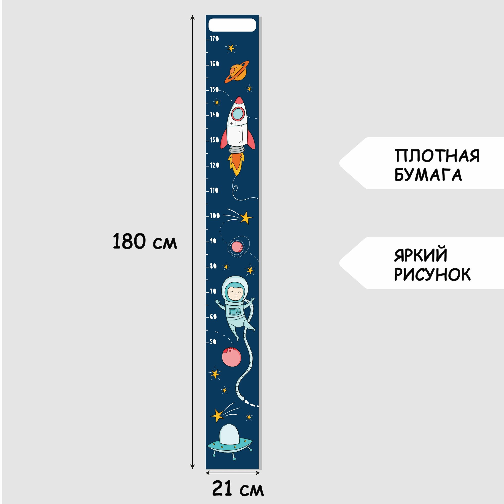 Ростомер "Ракета" бумажный 21*180 см интерьерный на стену информация: