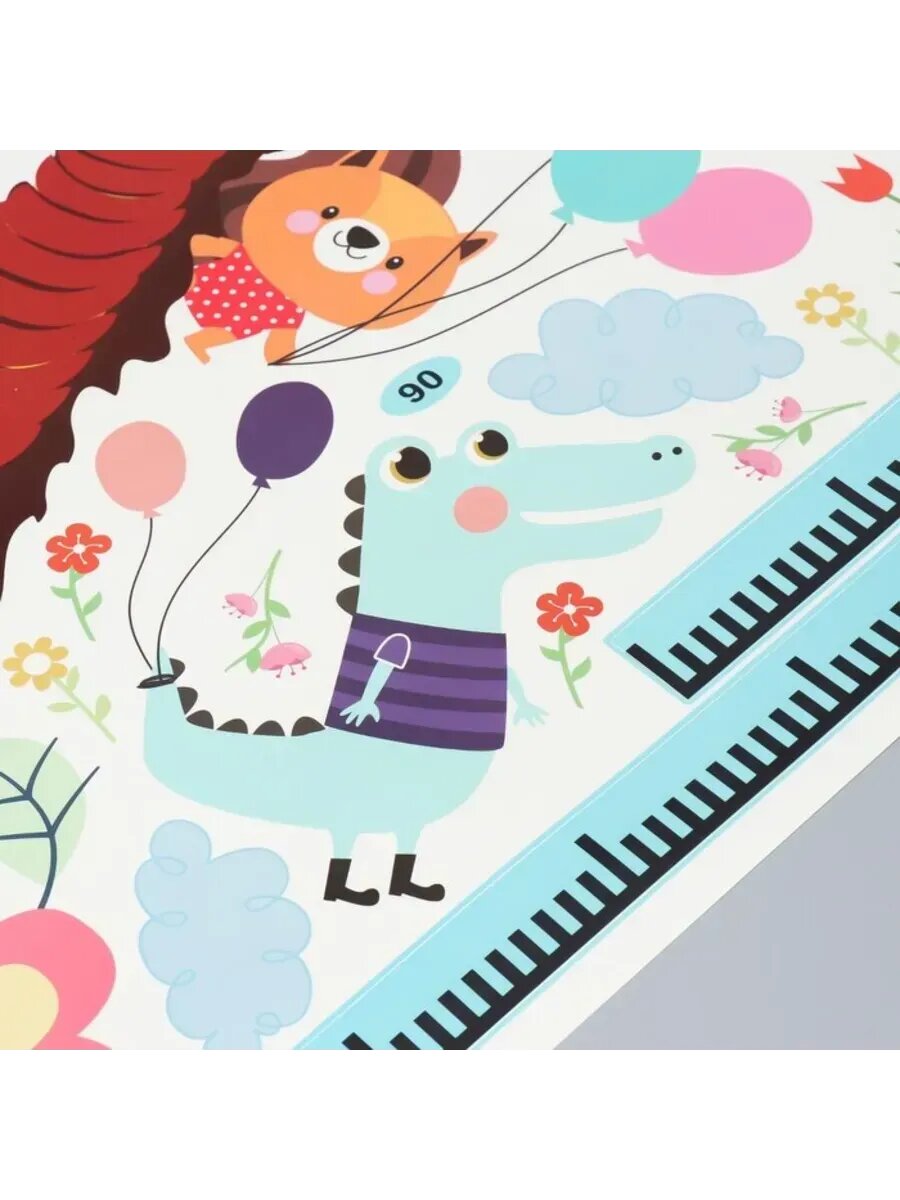 Наклейка ростомер интерьерная "Животные на шарах" 60x90 см