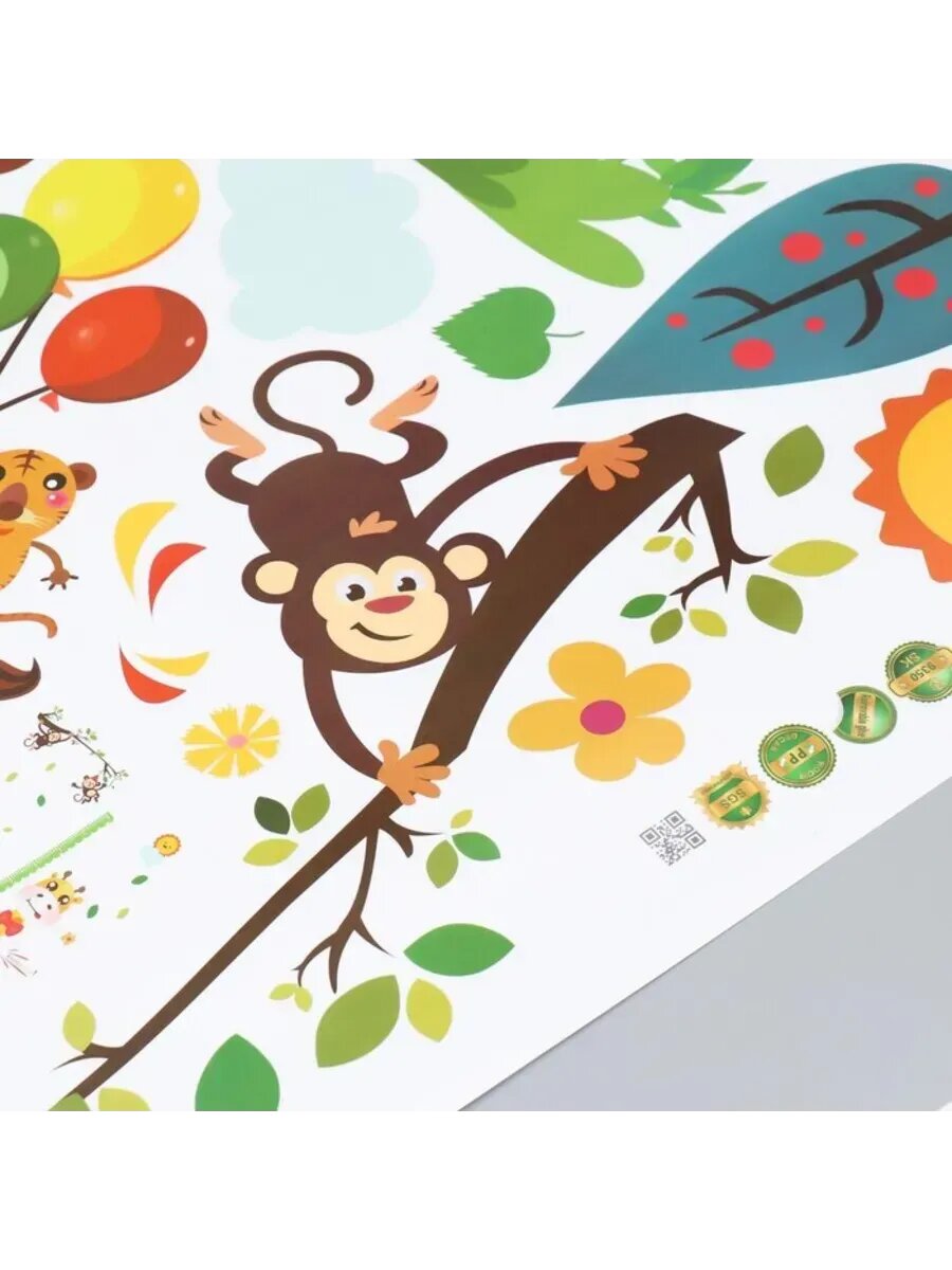Ростомер интерьерный наклейка "Жираф и мартышки" 60х90 см информация: