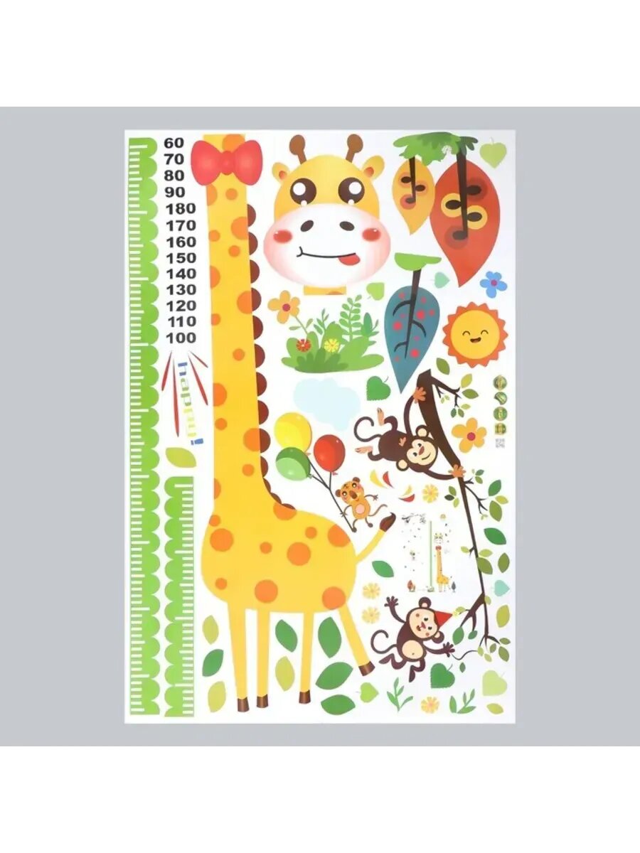 10 цен на Ростомер интерьерный наклейка "Жираф и мартышки" 60х90 см