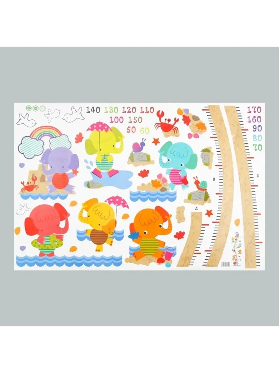 10 цен на Ростомер интерьерный наклейка "Слонята" 60x90 см