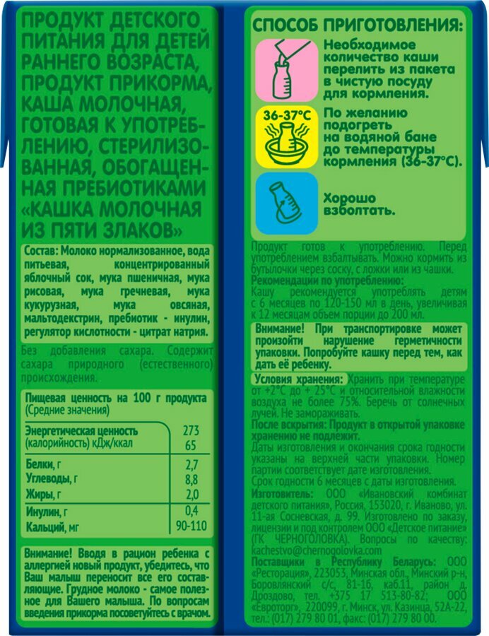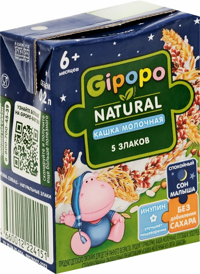 Д/п каша GIPOPO 5 злаков, питьевая молочная Арт. 010501-9999404 (Россия) 200мл информация: