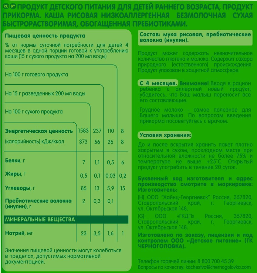 Д/п каша GIPOPO Рисовая, сухая безмолочная (Россия) 180г информация: