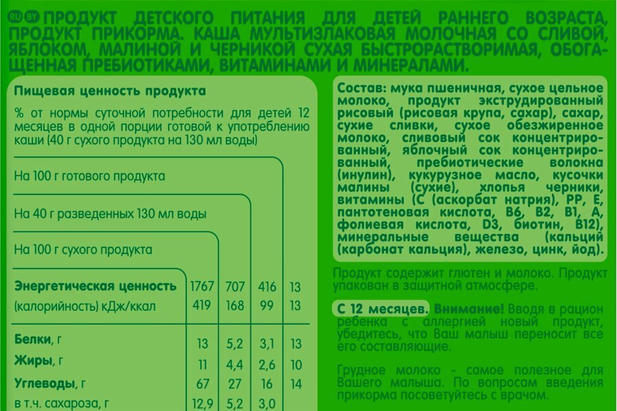 Д/п каша GIPOPO мультизл мол со сливой, яблоком, мал и черн сухая. (Россия) 200 г информация: