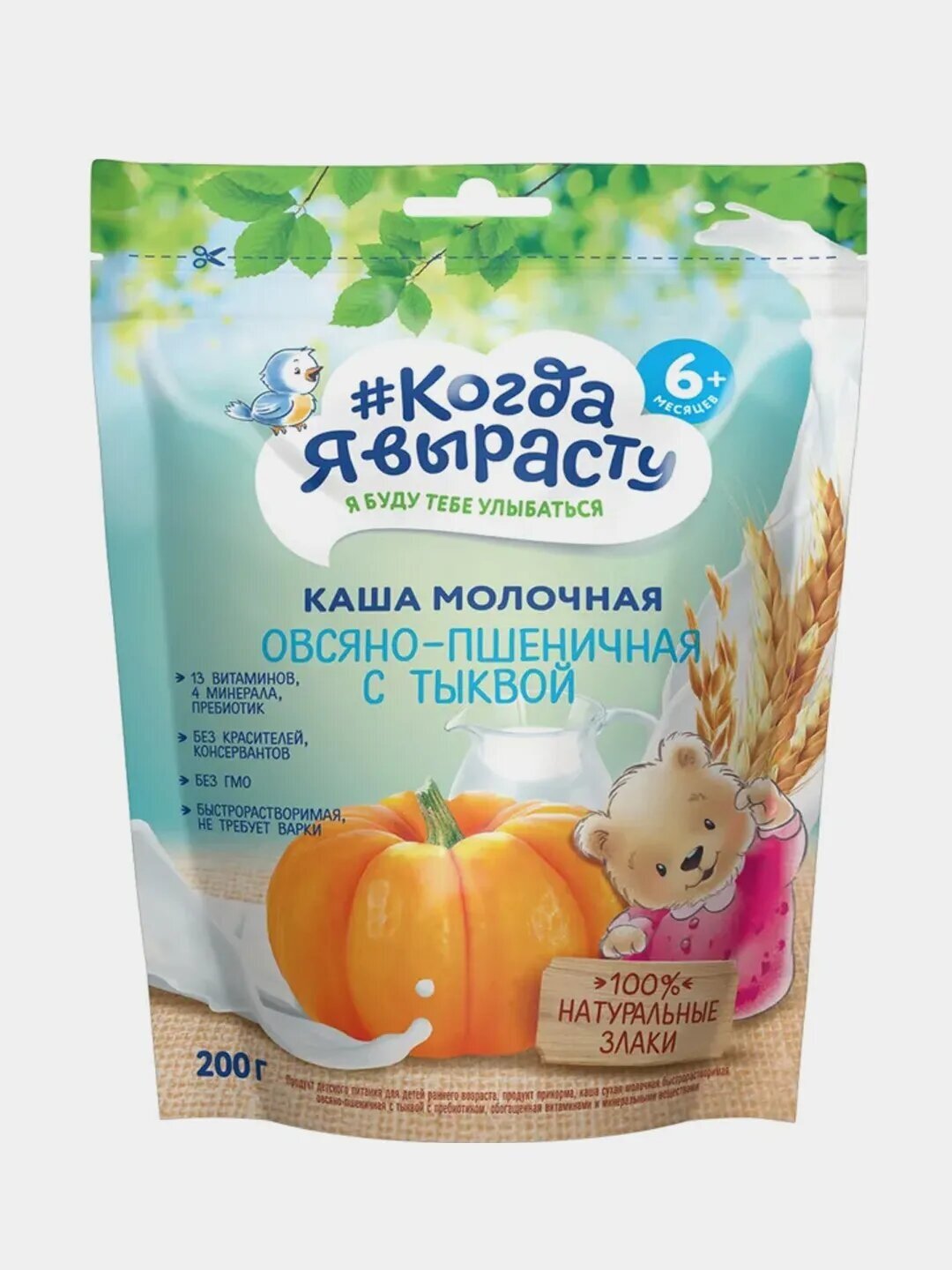 Каша Когда Я вырасту молочная овсяно-пшеничная с тыквой, с 6 месяцев, 200 г информация: