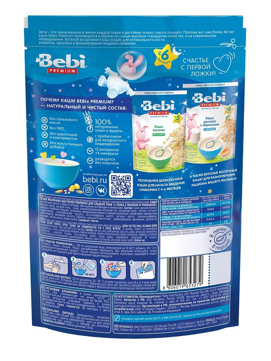 Каша молочная Bebi Premium 3 злака яблоко ромашка с 6 информация: