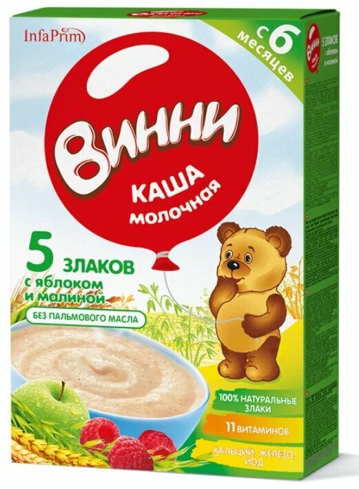 Отзывы на Каша сухая безмолочная Винни, 5 злаков, с яблоком и малиной, для детей старше 6 месяцев, 200 гр