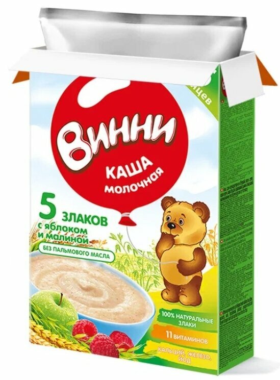 Отзывы на Каша сухая безмолочная Винни, 5 злаков, с яблоком и малиной, для детей старше 6 месяцев, 200 гр, 3 упаковки