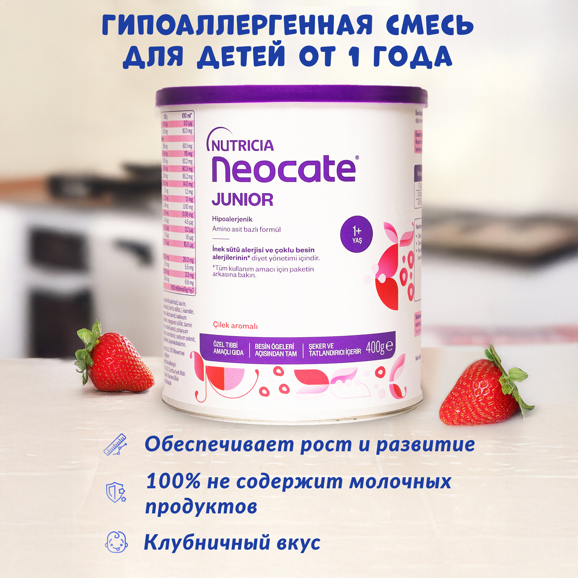 Neocate Junior со вкусом клубники детская гипоаллергенная смесь, безлактозы с аминокислотами Nutricia информация: